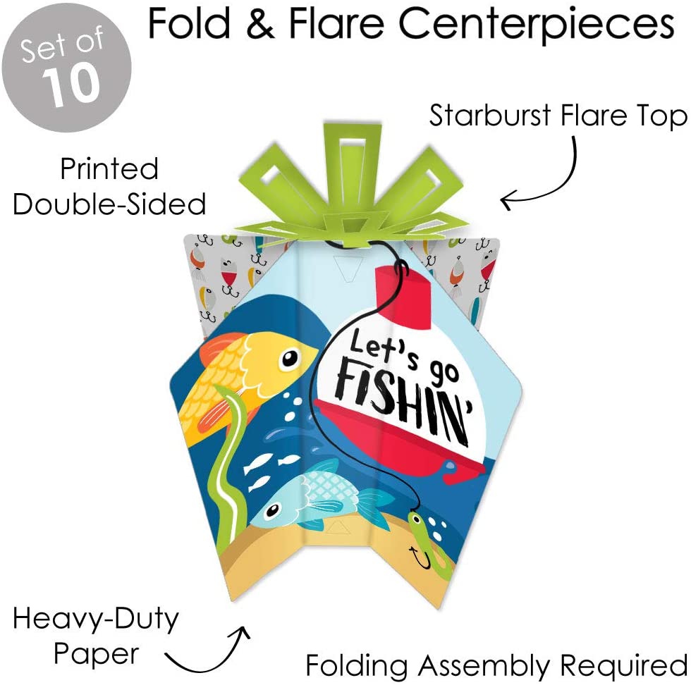 Let’s Go Fishing - Table Decorations - Fish Themed Birthday Party or Baby Shower Fold and Flare Centerpieces - 10 Count is backordered and will ship as soon as it is back in stock.