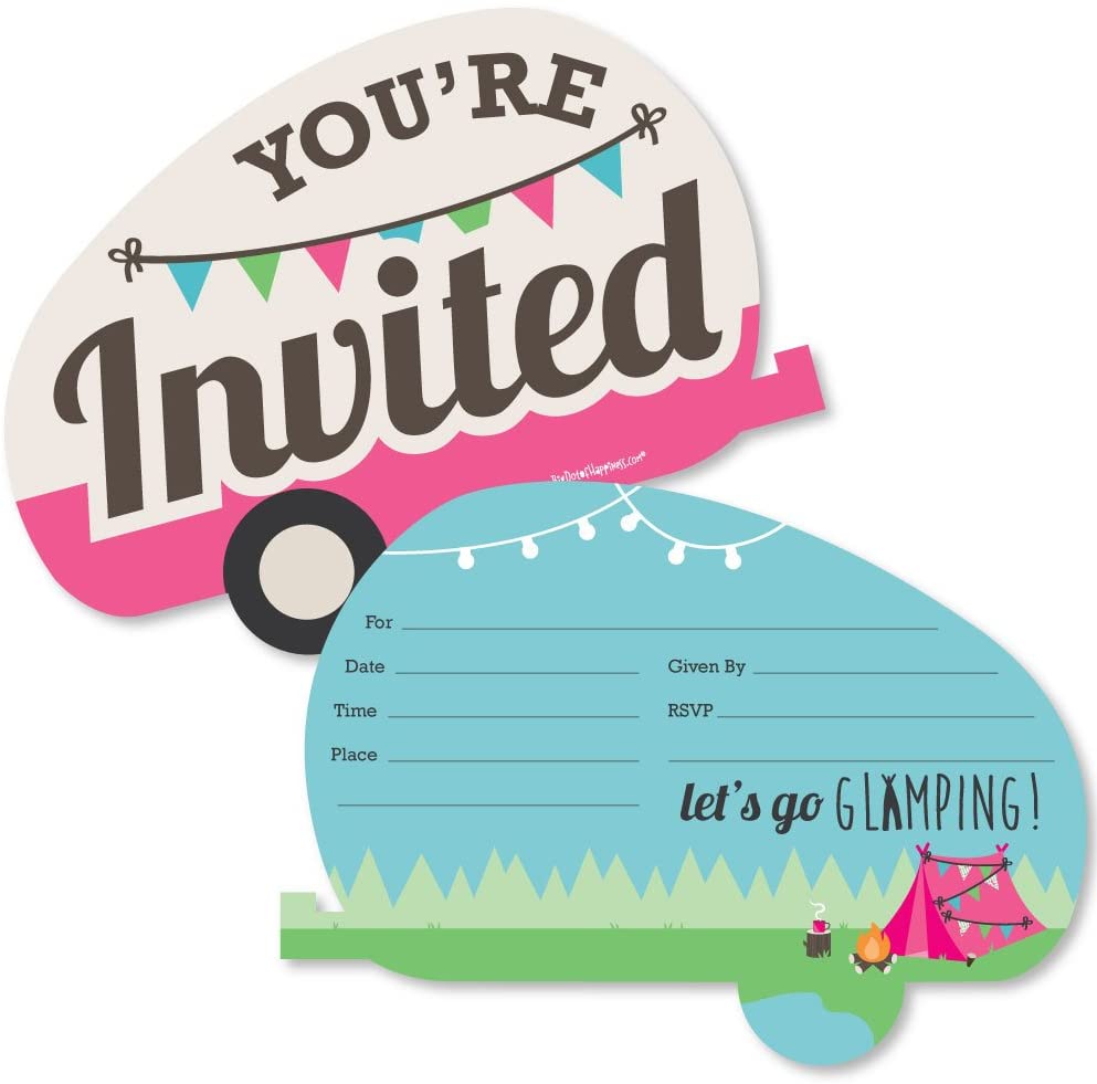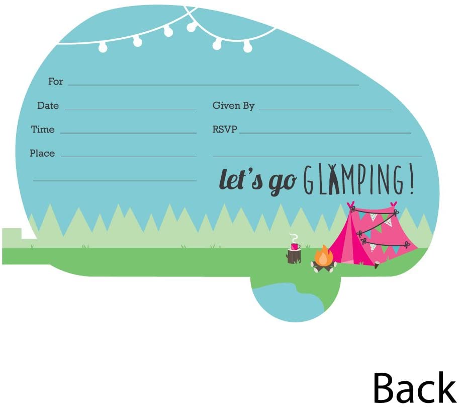 Let's Go Glamping - Shaped Fill-In Invitations - Camp Glamp Party or Birthday Party Invitation Cards with Envelopes - Set of 12 is backordered and will ship as soon as it is back in stock.