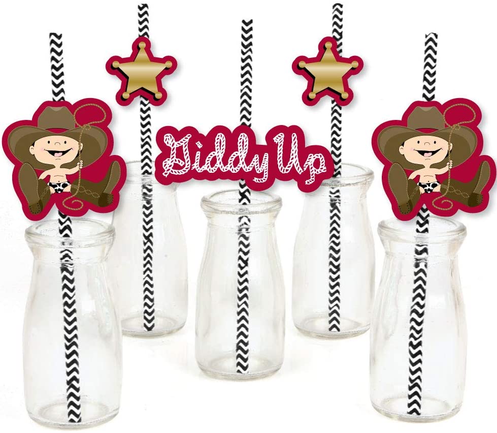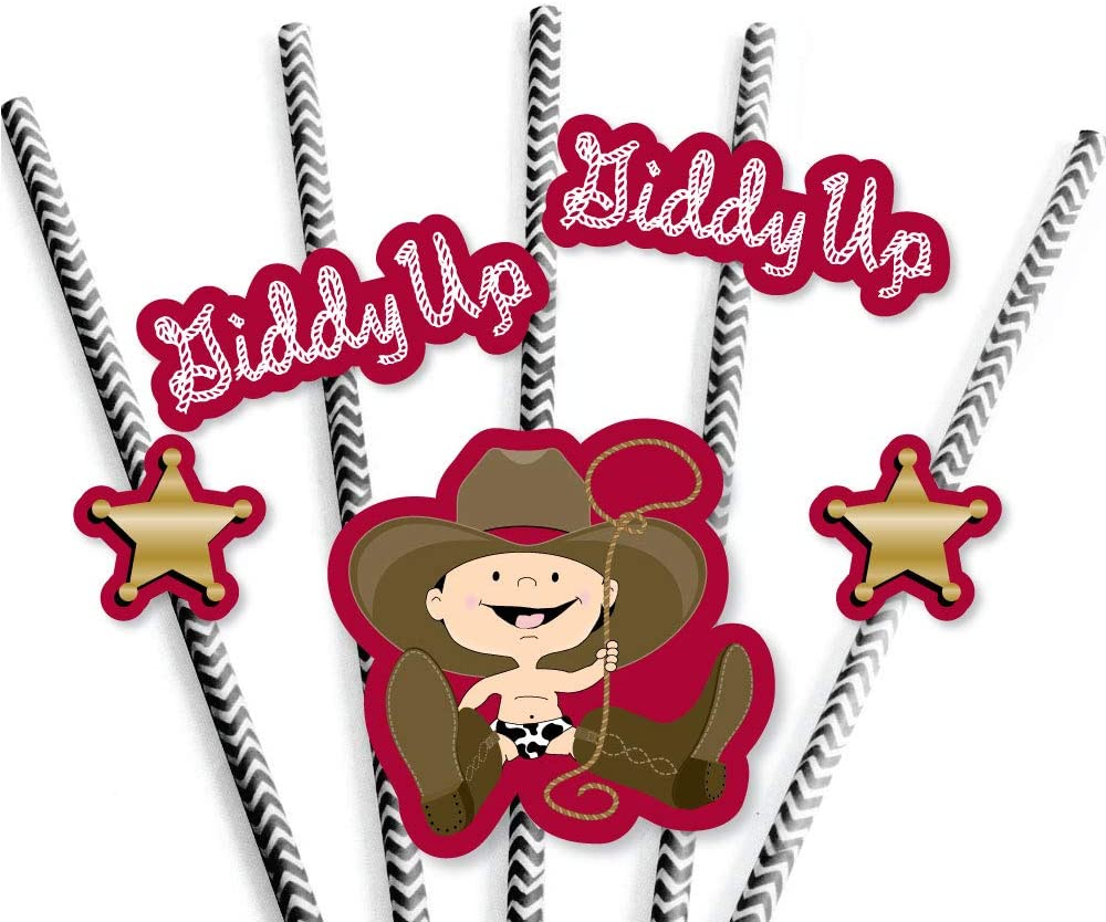 Little Cowboy - Western Paper Straw Decor - Baby Shower or Birthday Party Striped Decorative Straws - Set of 24 is backordered and will ship as soon as it is back in stock.