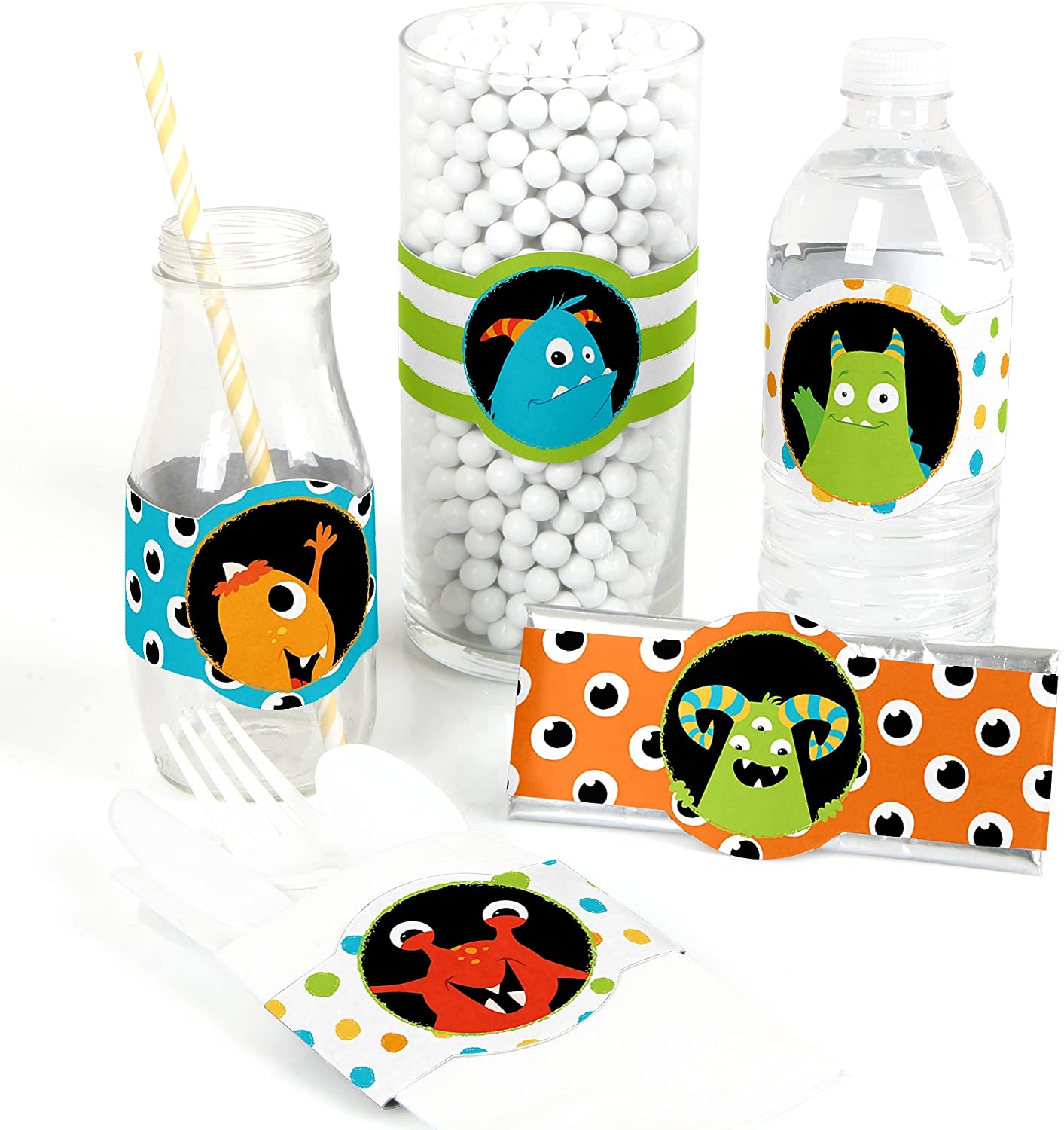• EASY PARTY DECORATIONS: Monster Bash DIY Baby Shower or Birthday Party Wrapper Favors make it easy to style a coordinated event. Wrap candy bars, treat containers and snack bags in these fun favor wraps. They also make adorable Monster Bash table decorations when you wrap apothecary jars at your candy buffet and centerpiece containers. Or, use them at beverage labels and napkin rings for easy party decorations in the Monster Bash theme!