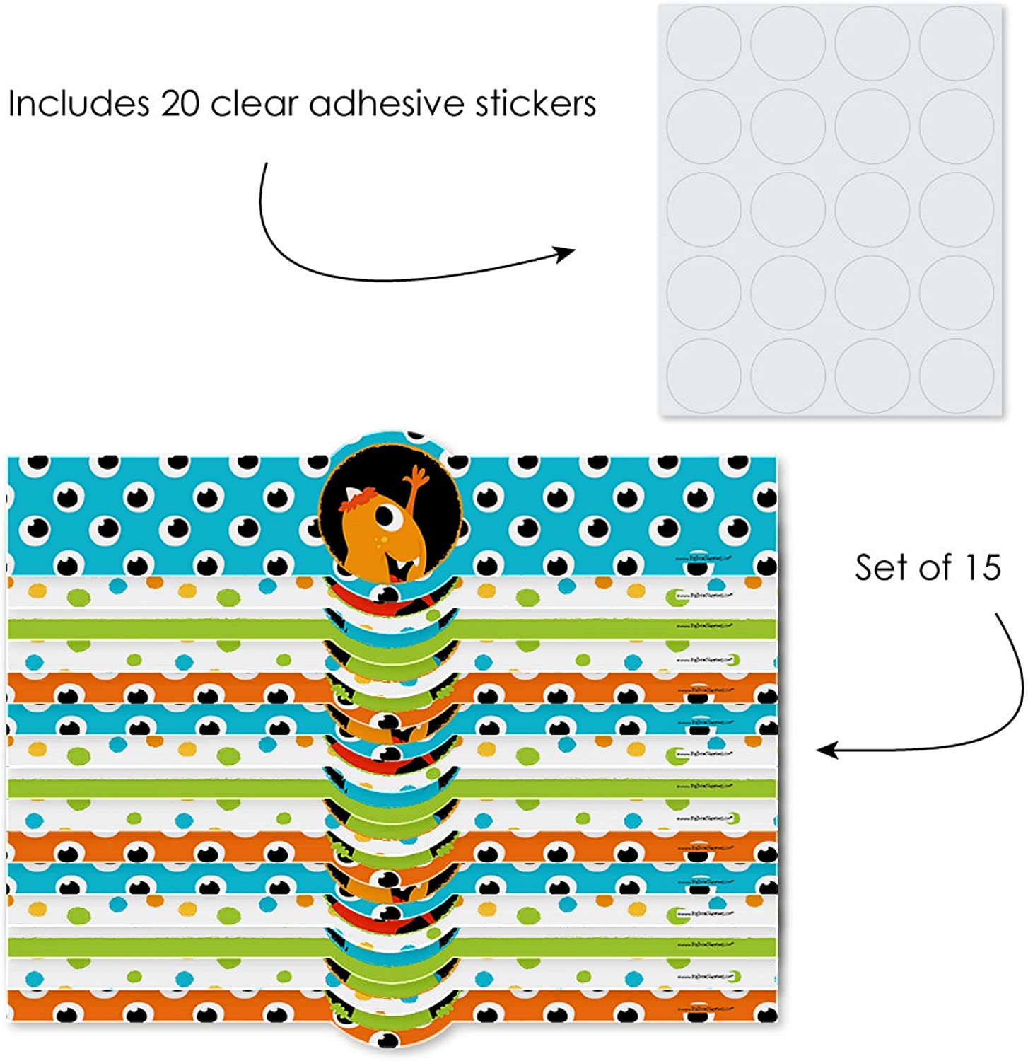 • Monster Bash DIY Wrappers INCLUDES 15 kids monster party wrappers and 20 clear stickers. Monster Bash DIY party supplies are perfect for a baby shower or birthday party.