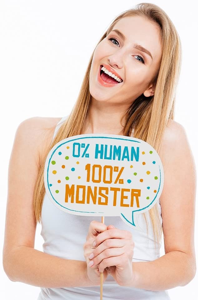 • HIGH-QUALITY PARTY SUPPLIES: Monster Bash baby shower or birthday photo booth props are professionally printed on thick cardstock paper. They will arrive cut out and ready to assemble with the included wooden dowel sticks and adhesives.