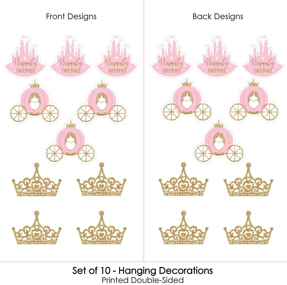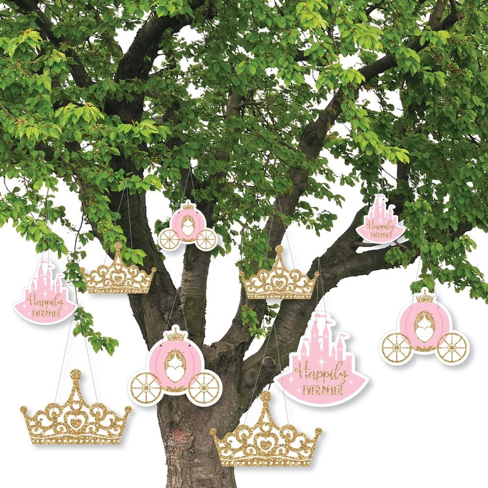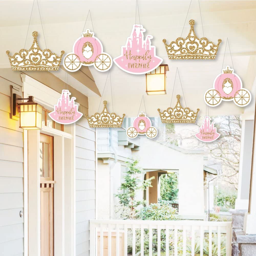Hanging Little Princess Crown - Outdoor Hanging Decor - Pink and Gold Princess Baby Shower or Birthday Party Decorations - 10 Pieces is backordered and will ship as soon as it is back in stock.