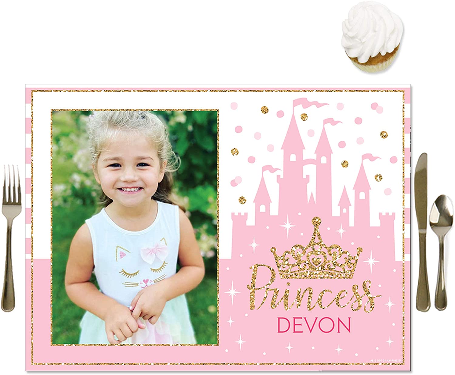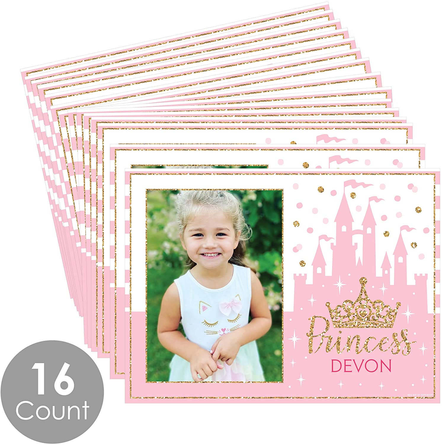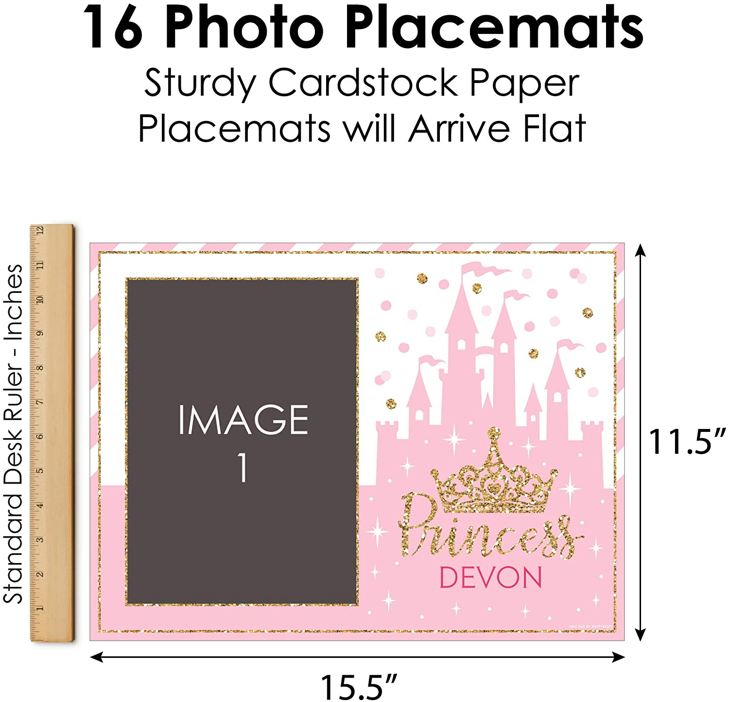 Happiness Personalized Little Princess Crown - Custom Pink and Gold Princess Baby Shower or Birthday Party Table Decorations - Photo Placemats - Set of 16 is backordered and will ship as soon as it is back in stock.