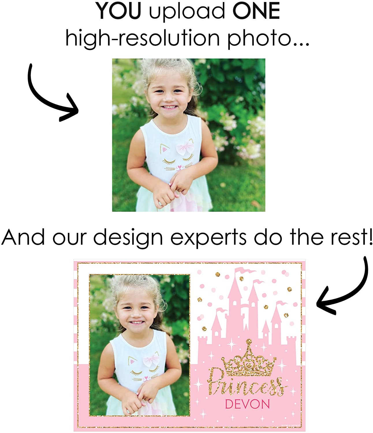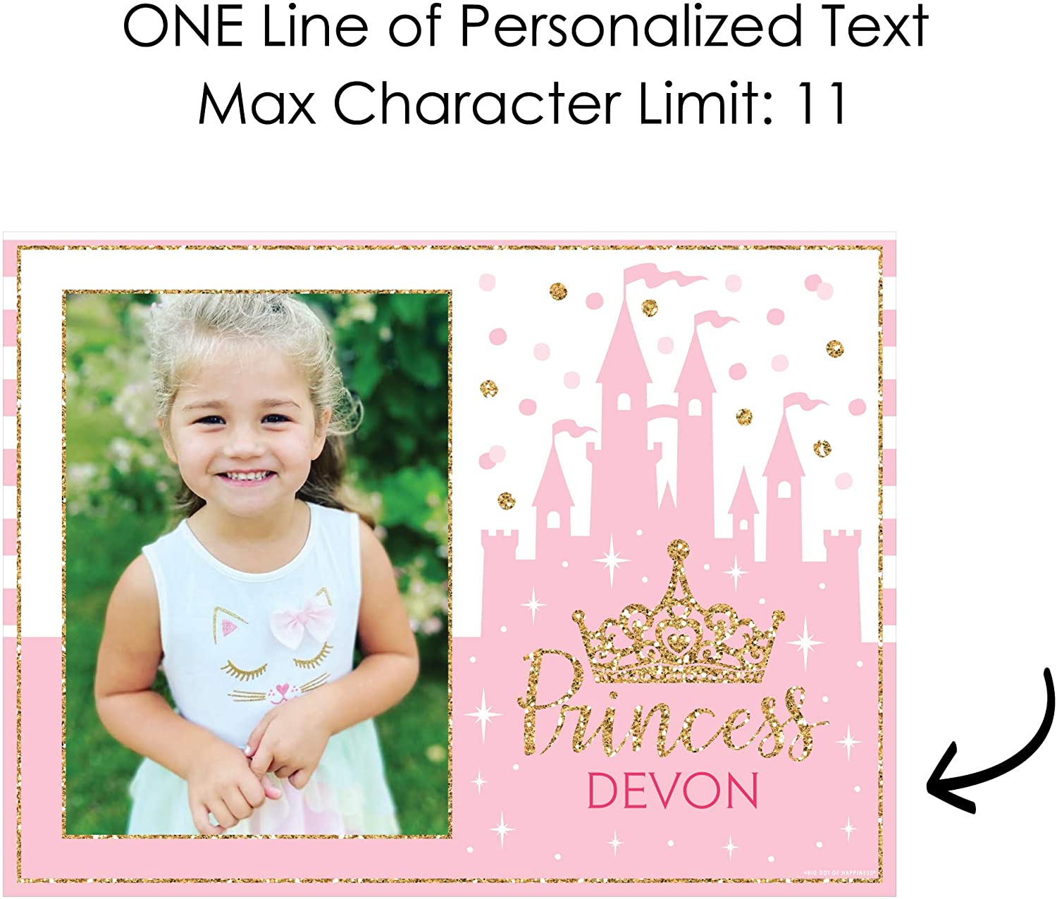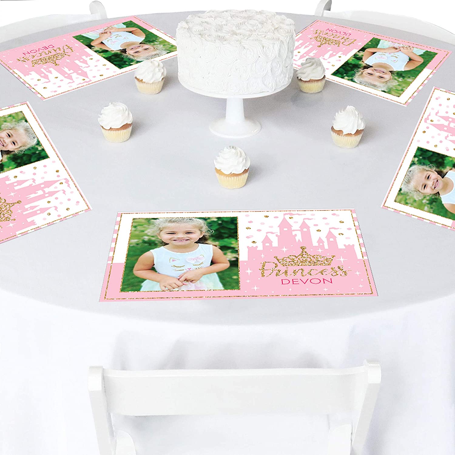 Happiness Personalized Little Princess Crown - Custom Pink and Gold Princess Baby Shower or Birthday Party Table Decorations - Photo Placemats - Set of 16 is backordered and will ship as soon as it is back in stock.