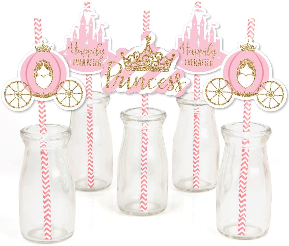 Little Princess Crown - Paper Straw Decor - Pink and Gold Princess Baby Shower or Birthday Party Striped Decorative Straws - Set of 24 is backordered and will ship as soon as it is back in stock.