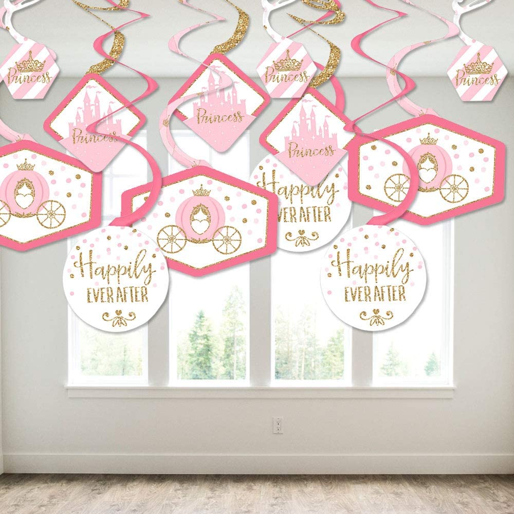 Little Princess Crown - Pink and Gold Princess Baby Shower or Birthday Party Hanging Decor - Party Decoration Swirls - Set of 40 is backordered and will ship as soon as it is back in stock.