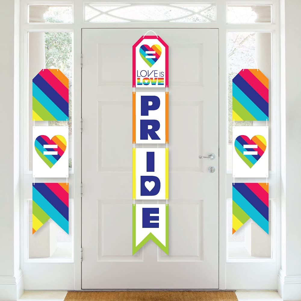 Love is Love - Gay Pride - Hanging Vertical Paper Door Banners - LGBTQ Rainbow Party Wall Decoration Kit - Indoor Door Decor