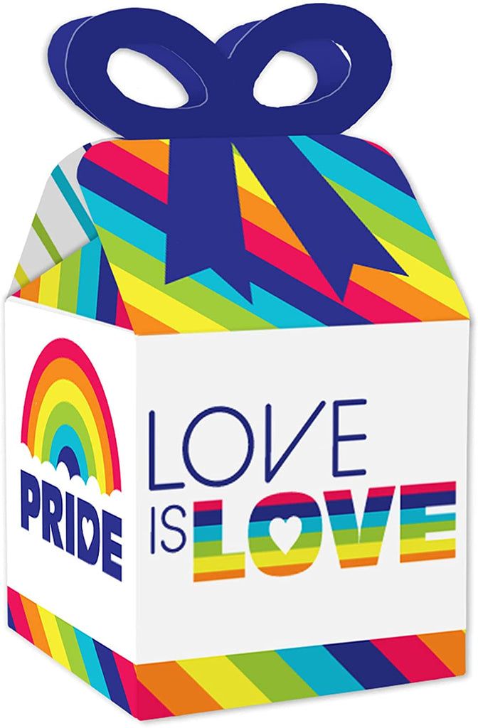 Love is Love - Gay Pride - Square Favor Gift Boxes - LGBTQ Rainbow Party Bow Boxes - Set of 12