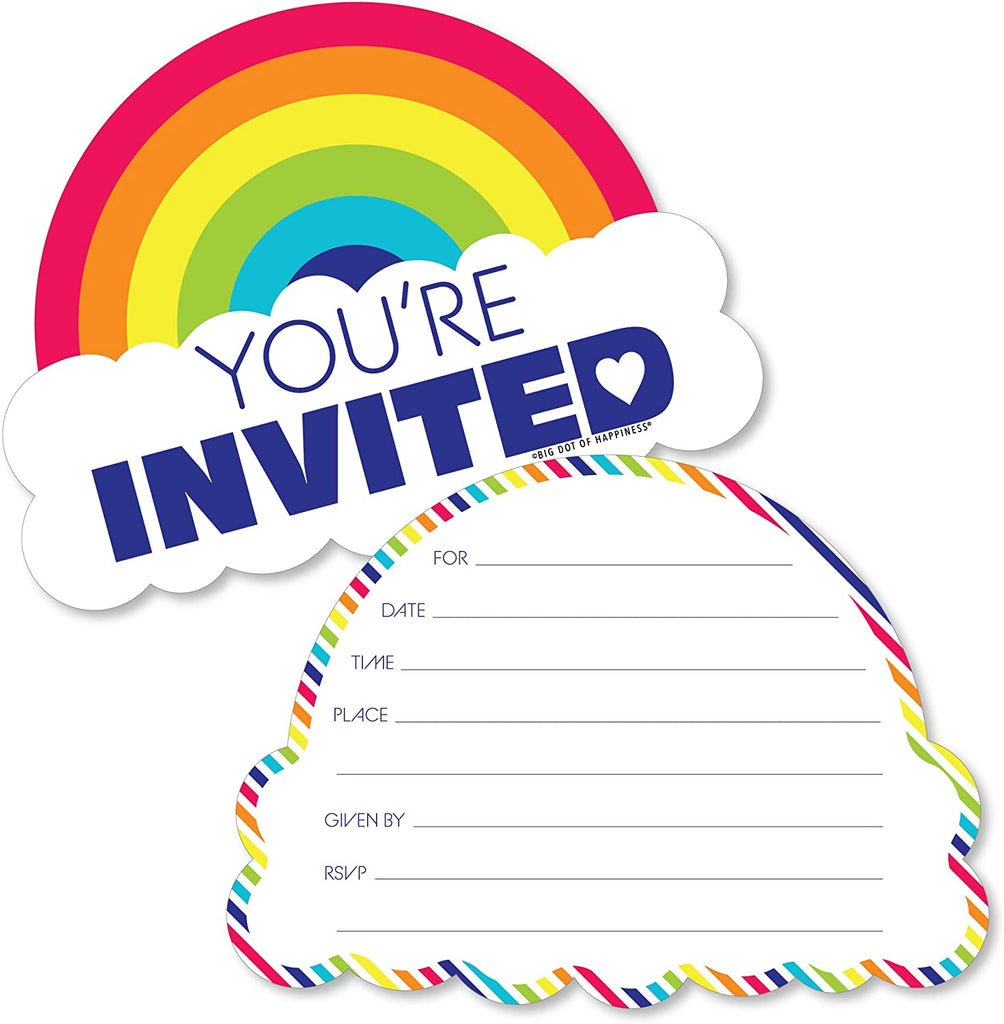 Love is Love - Gay Pride - Shaped Fill-In Invitations - LGBTQ Rainbow Party Invitation Cards with Envelopes - Set of 12