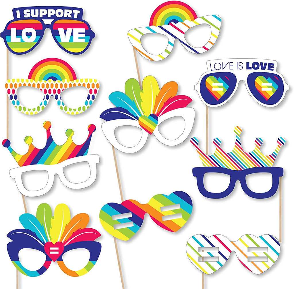 Love is Love - Gay Pride Glasses - Paper Card Stock LGBTQ Rainbow Party Photo Booth Props Kit - 10 Count