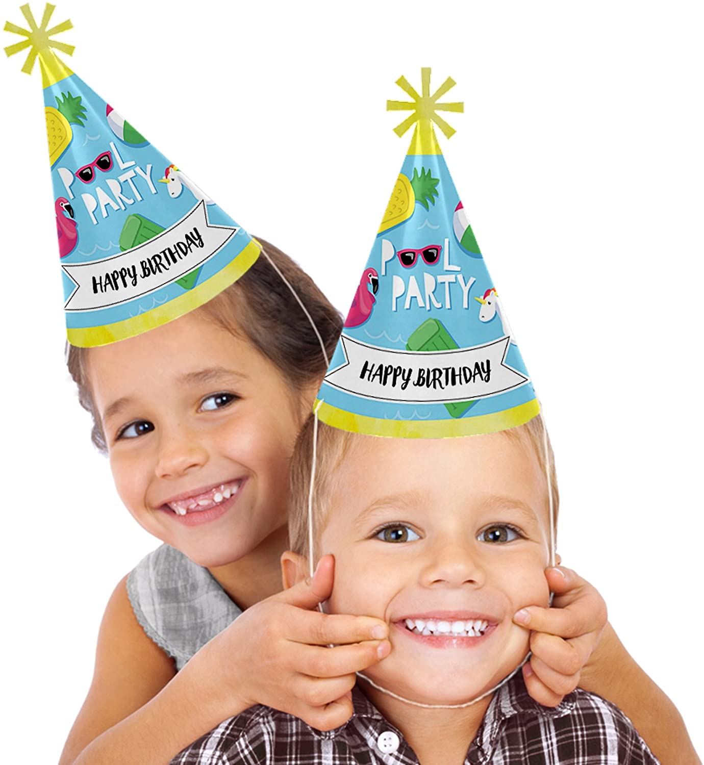 Make a Splash - Pool Party - Happy Birthday Party Hats - Set of 8 is backordered and will ship as soon as it is back in stock.
