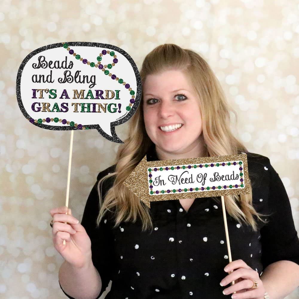 • HIGH-QUALITY: Mardi Gras Fat Tuesday photo booth props are professionally printed on thick cardstock paper. They will arrive cut out and ready to assemble with the included wooden dowel sticks and adhesives. Fat Tuesday photo booth props use a No-Mess Glitter Print: Our photo booth props are designed with a printed image of glitter, eliminating glitter flake while maximizing bling effect!