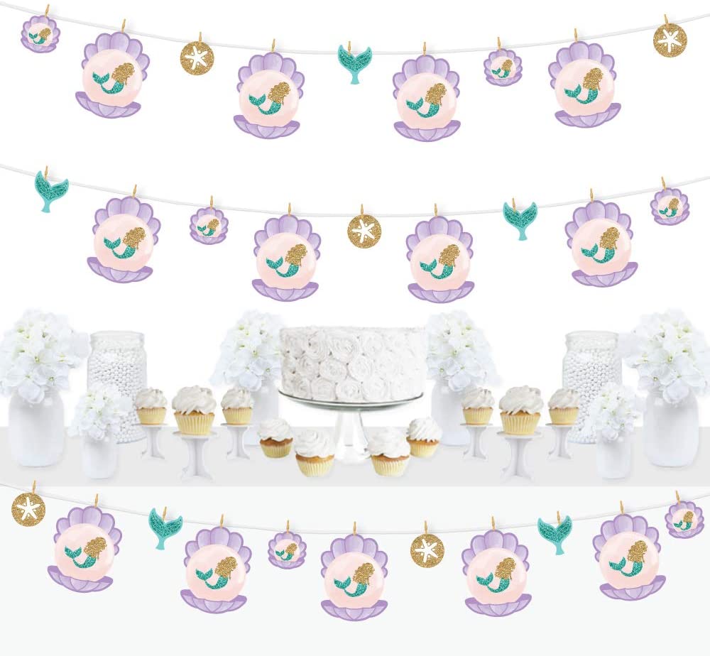 Let’s Be Mermaids - Baby Shower or Birthday Party DIY Decorations - Clothespin Garland Banner - 44 Pieces is backordered and will ship as soon as it is back in stock.
