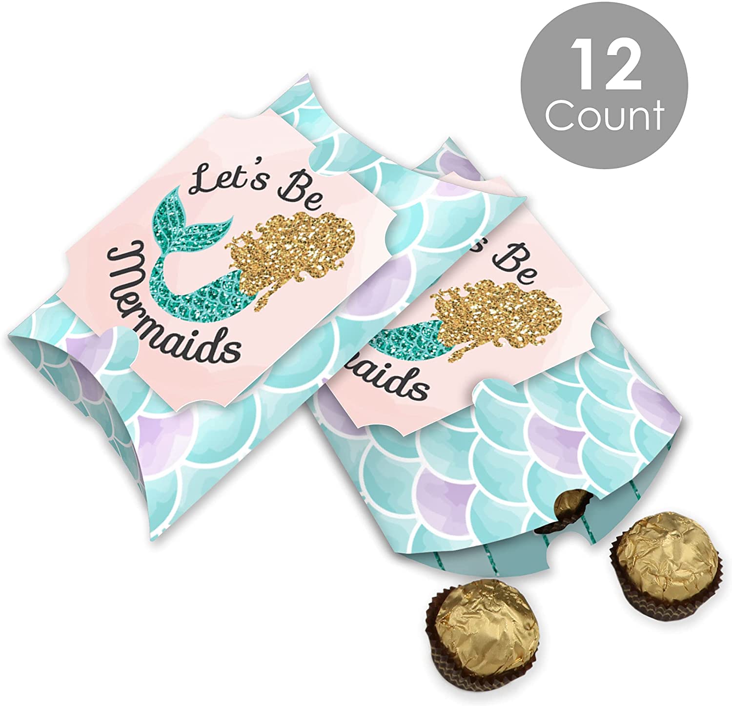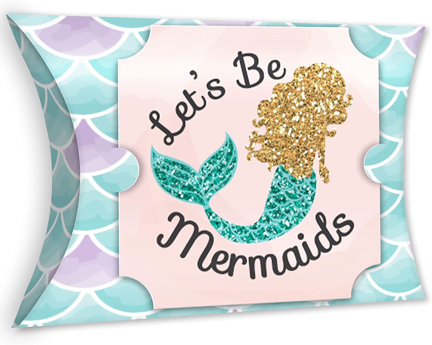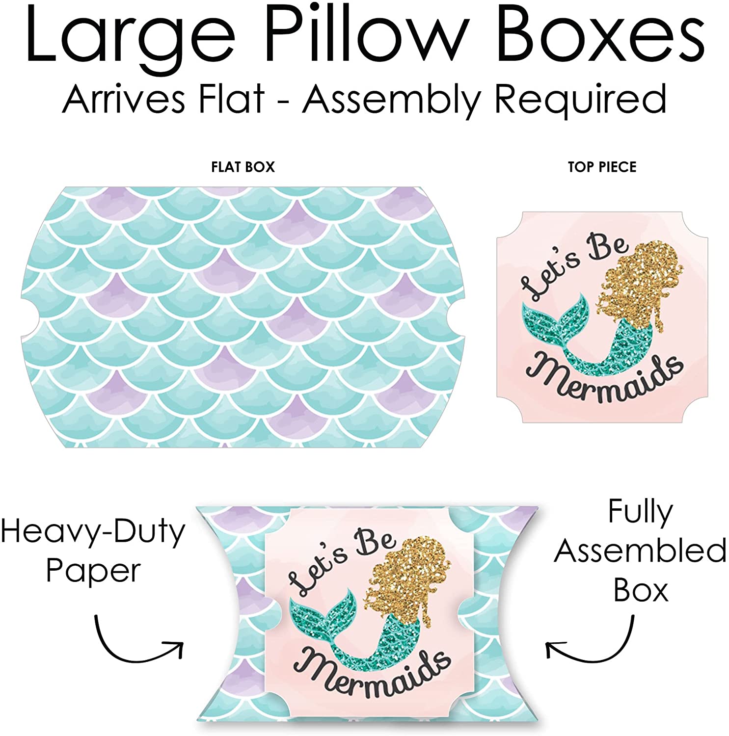 Let’s Be Mermaids - Favor Gift Boxes - Baby Shower or Birthday Party Large Pillow Boxes - Set of 12 is backordered and will ship as soon as it is back in stock.