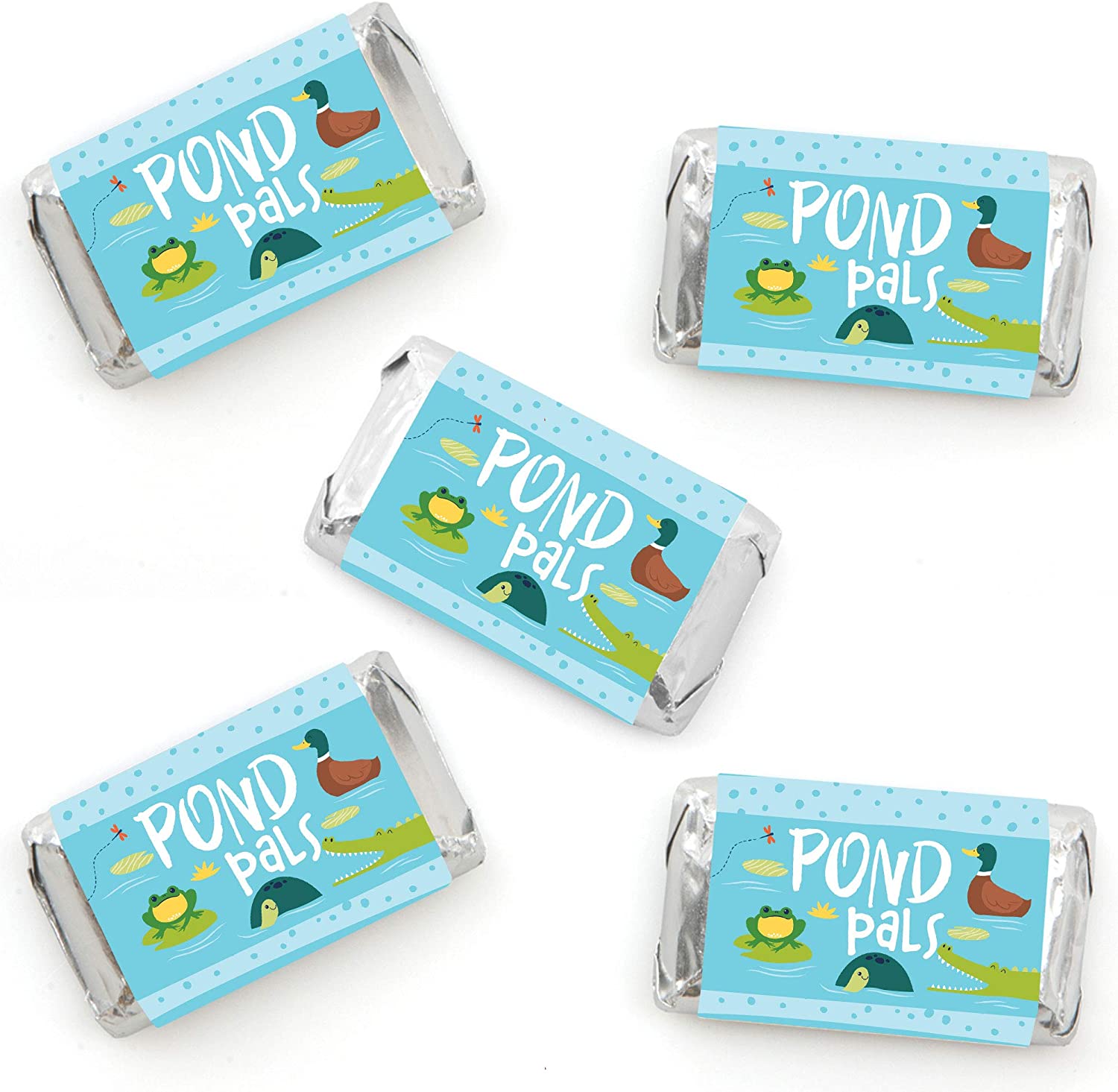 Pond Pals - Mini Candy Bar Wrapper Stickers - Frog, Alligator, Turtle and Duck Birthday Party or Baby Shower Small Favors - 40 Count is backordered and will ship as soon as it is back in stock.