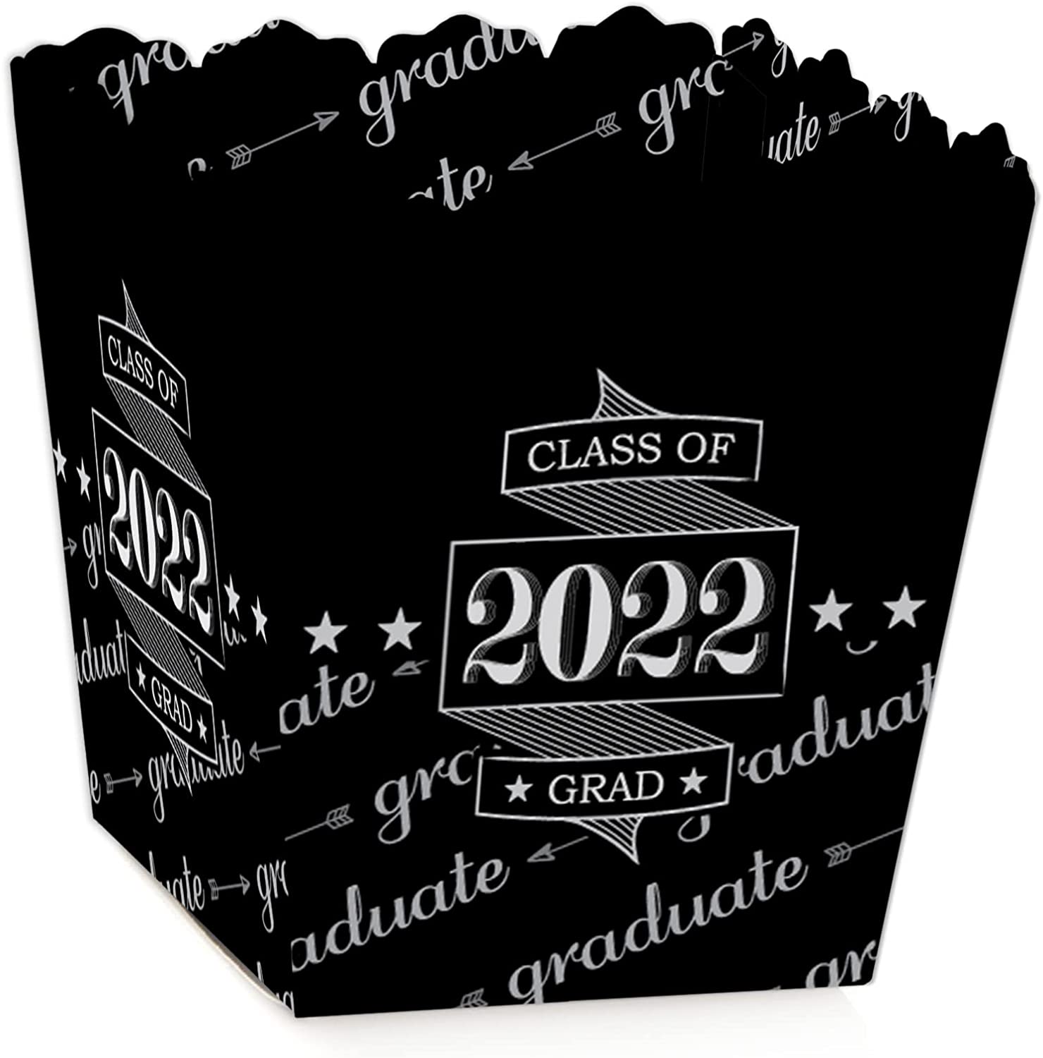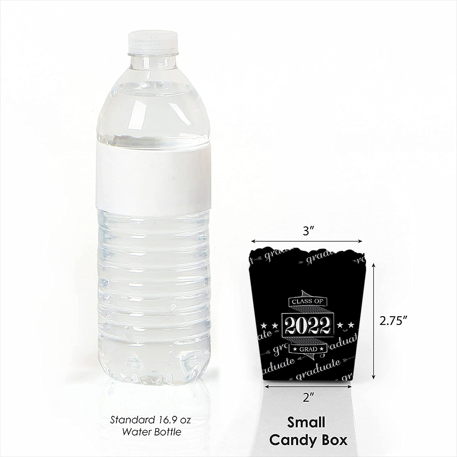 • Graduation Cheers party favor mini candy boxes SIZE 2.75 inches tall x 3 inches square at the top. The unique design makes these 12 black and white favor boxes a must-have for any graduation party.