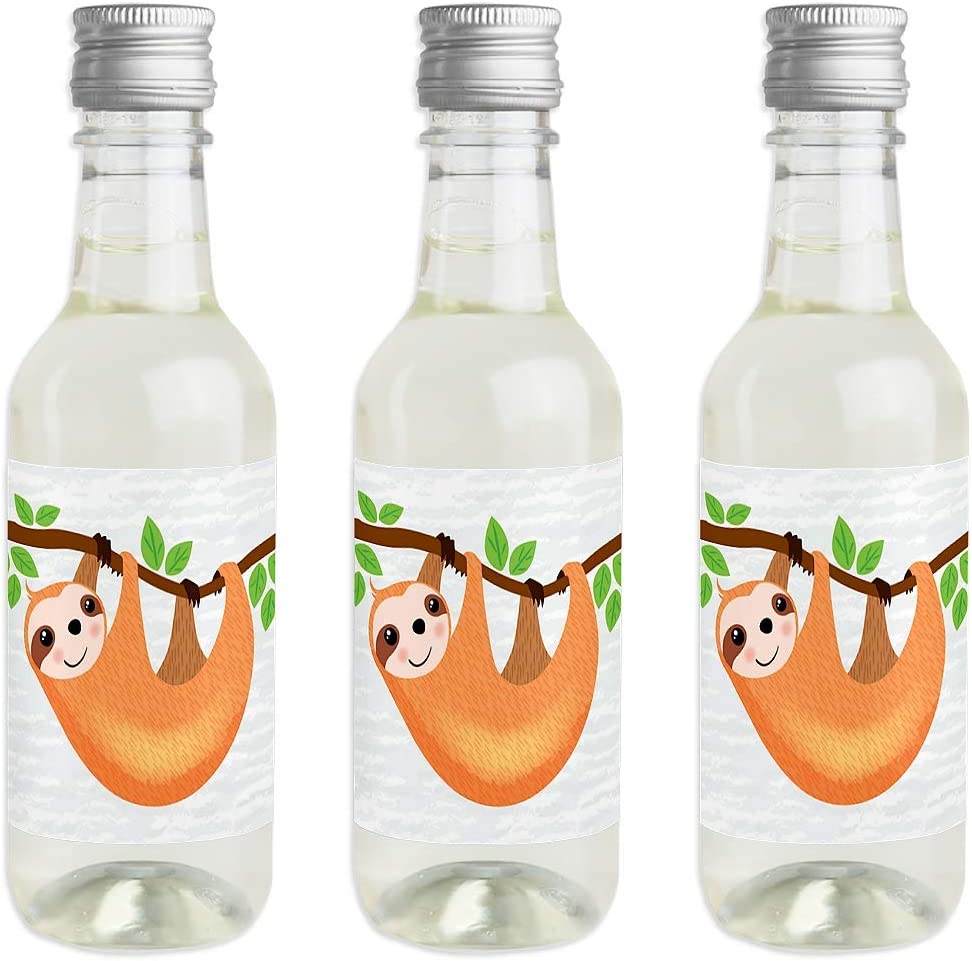 Let’s Hang - Sloth - Mini Wine and Champagne Bottle Label Stickers - Baby Shower or Birthday Party Favor Gift for Women and Men - Set of 16