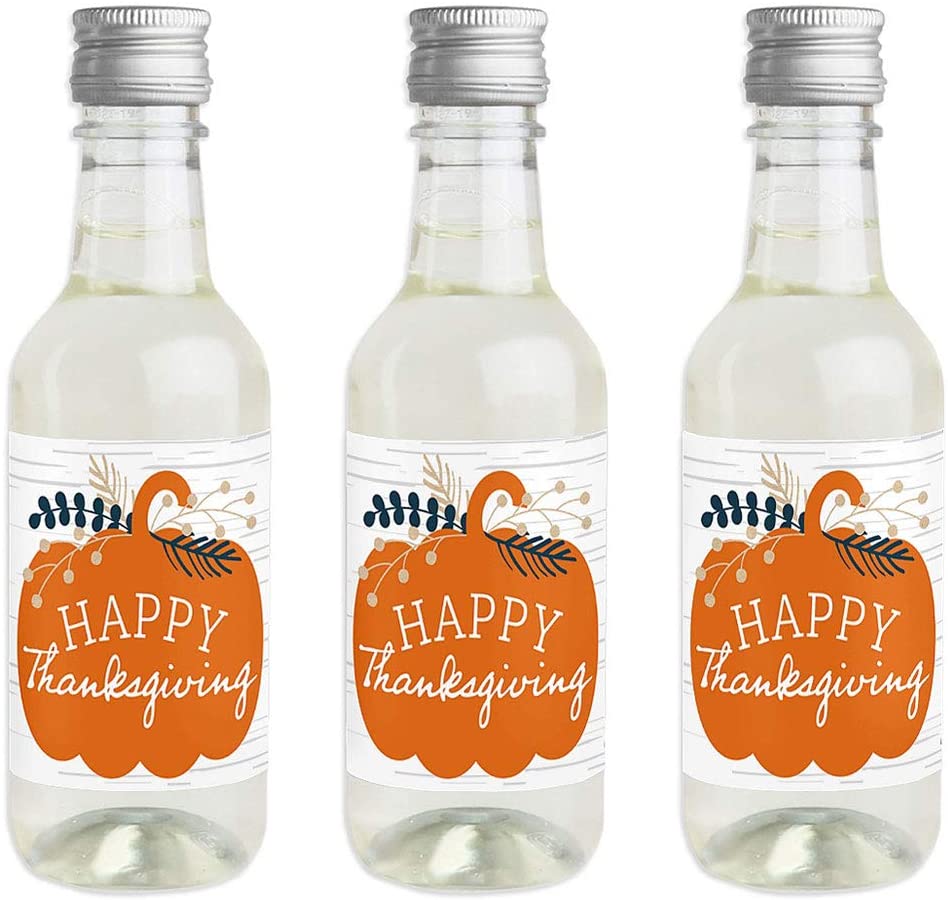Happy Thanksgiving - Mini Wine and Champagne Bottle Label Stickers - Fall Harvest Party Favor Gift for Women and Men - Set of 16