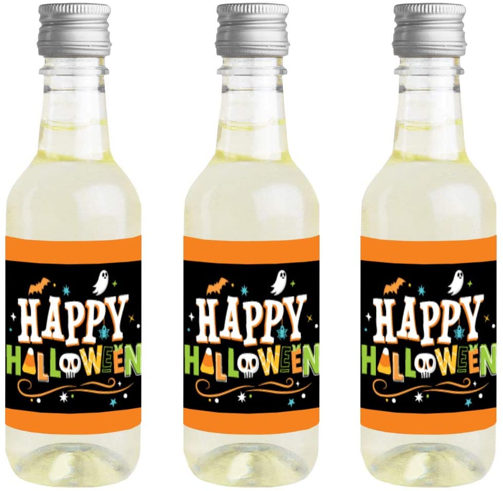 Happy Halloween - Mini Wine and Champagne Bottle Label Stickers - Witch Party Favor Gift for Women and Men - Set of 16