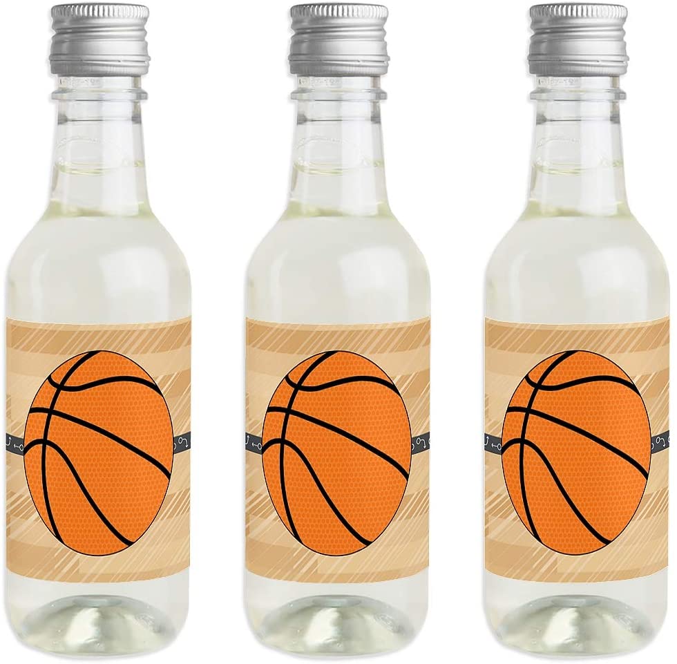 Nothin' but Net - Basketball - Mini Wine and Champagne Bottle Label Stickers - Baby Shower or Birthday Party Favor Gift for Women and Men - Set of 16
