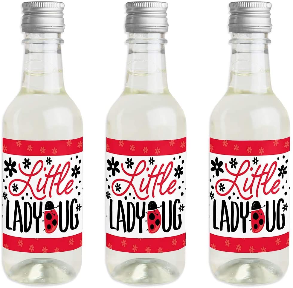 Happy Little Ladybug - Mini Wine and Champagne Bottle Label Stickers - Baby Shower or Birthday Party Favor Gift for Women and Men - Set of 16