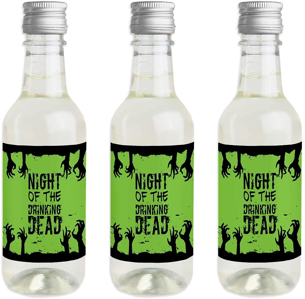 Zombie Zone - Mini Wine and Champagne Bottle Label Stickers - Halloween Zombie Crawl Party Favor Gift for Women and Men - Set of 16