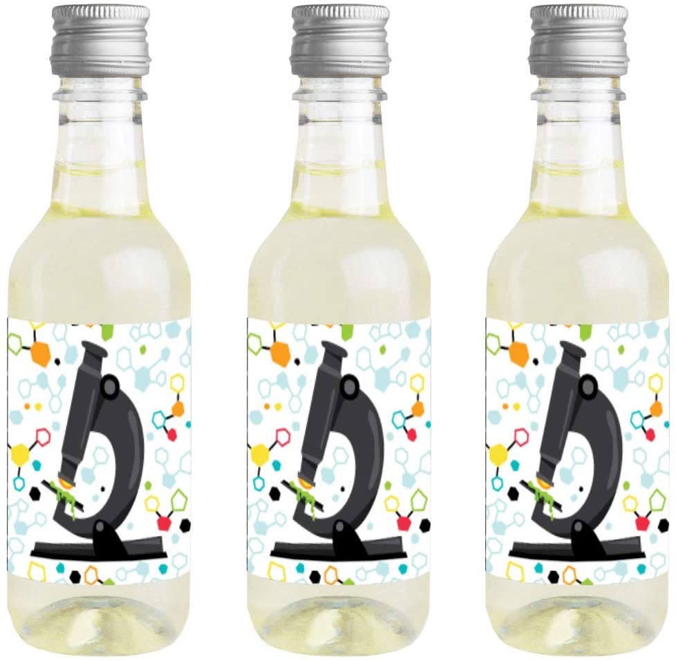 Scientist Lab - Mini Wine and Champagne Bottle Label Stickers - Mad Science Baby Shower or Birthday Party Favor Gift for Women and Men - Set of 16