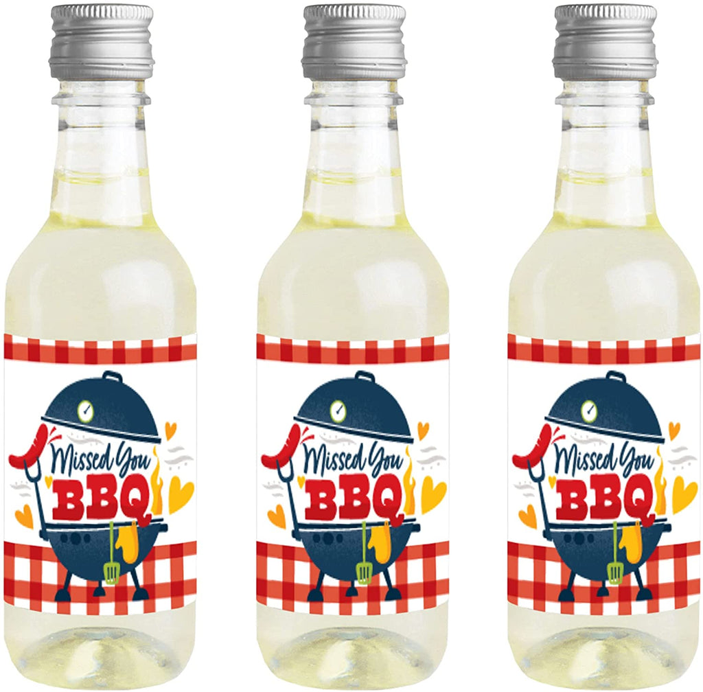 Missed You BBQ - Mini Wine and Champagne Bottle Label Stickers - Backyard Summer Picnic Party Favor Gift for Women and Men - Set of 16