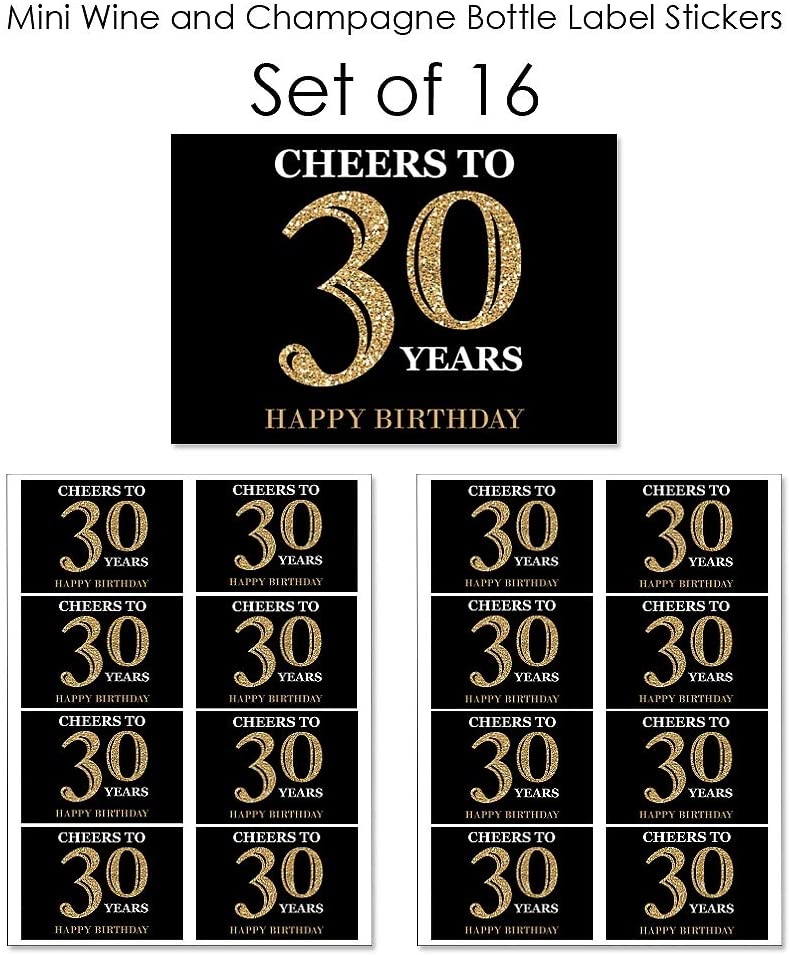 Adult 30th Birthday - Gold - Mini Wine and Champagne Bottle Label Stickers - Birthday Party Favor Gift for Women and Men - Set of 16 is backordered and will ship as soon as it is back in stock.