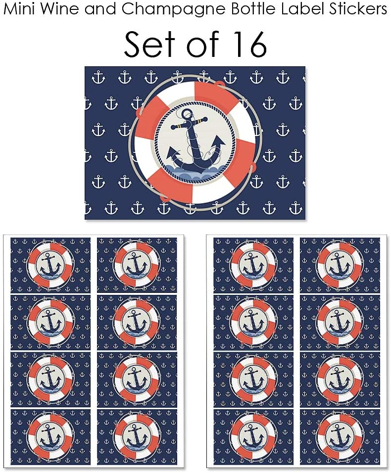 Ahoy - Nautical - Mini Wine and Champagne Bottle Label Stickers - Baby Shower or Birthday Party Favor Gift for Women and Men - Set of 16 is backordered and will ship as soon as it is back in stock.