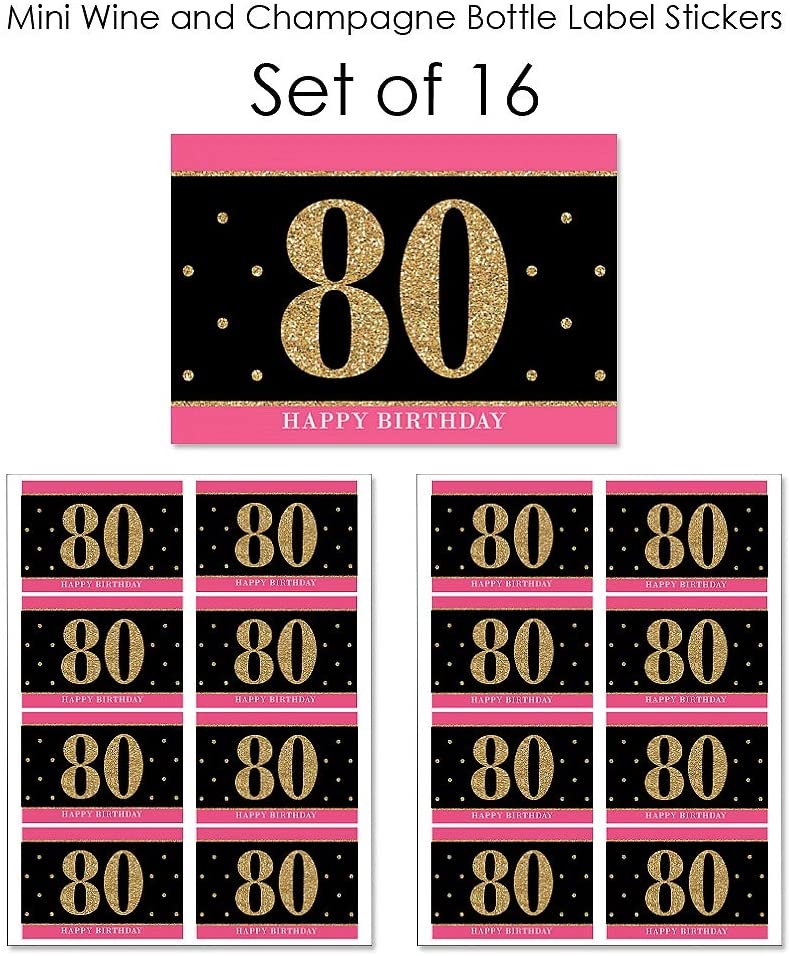 Chic 80th Birthday - Pink, Black and Gold - Mini Wine and Champagne Bottle Label Stickers - Birthday Party Favor Gift for Women and Men - Set of 16 is backordered and will ship as soon as it is back in stock.