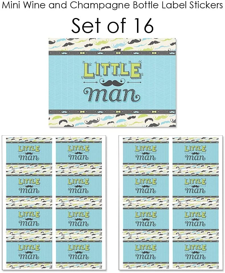 Dashing Little Man Mustache Party - Mini Wine and Champagne Bottle Label Stickers - Baby Shower or Birthday Party Favor Gift for Women and Men - Set of 16 is backordered and will ship as soon as it is back in stock.