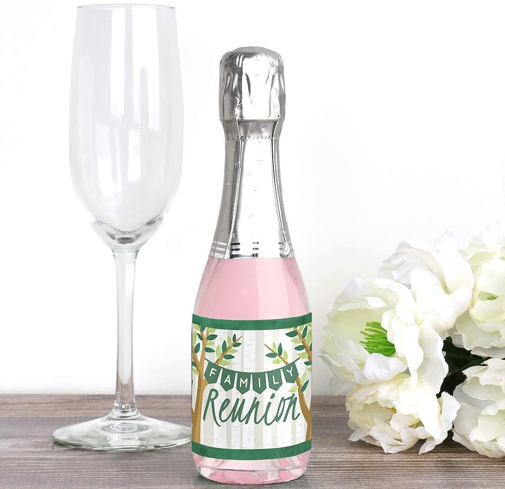Family Tree Reunion - Mini Wine and Champagne Bottle Label Stickers - Family Gathering Party Favor Gift for Women and Men - Set of 16