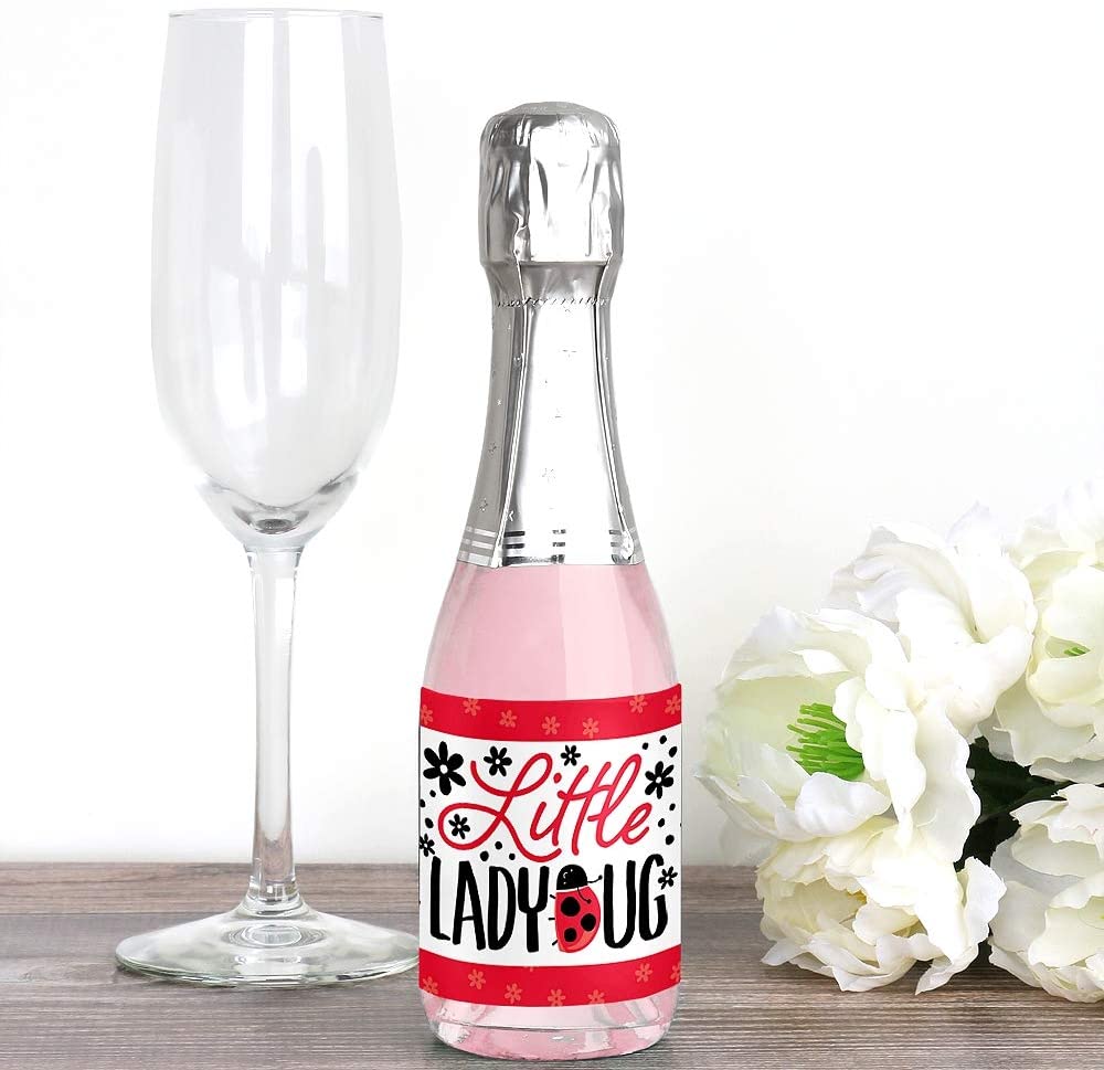 Happy Little Ladybug - Mini Wine and Champagne Bottle Label Stickers - Baby Shower or Birthday Party Favor Gift for Women and Men - Set of 16 is backordered and will ship as soon as it is back in stock.