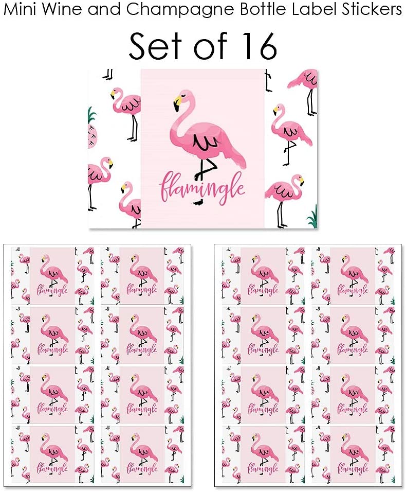 Pink Flamingo - Mini Wine and Champagne Bottle Label Stickers - Tropical Summer Party Favor Gift for Women and Men - Set of 16 is backordered and will ship as soon as it is back in stock.