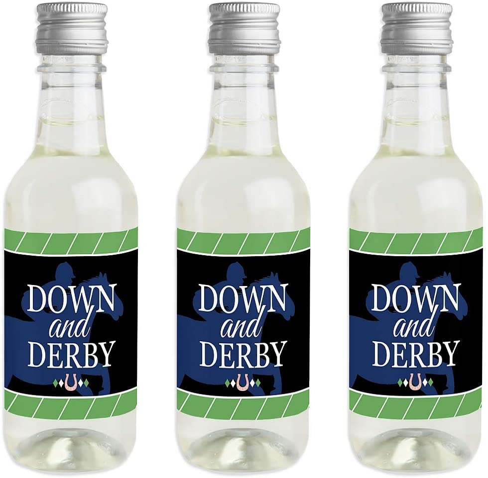 Kentucky Horse Derby - Mini Wine and Champagne Bottle Label Stickers - Horse Race Party Favor Gift for Women and Men - Set of 16