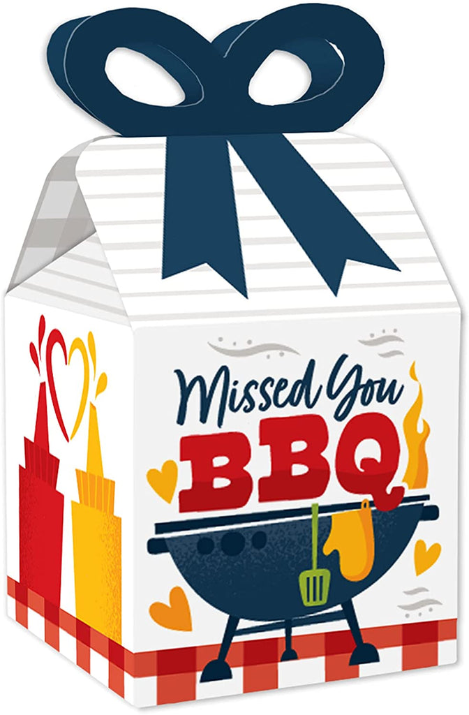 Missed You BBQ - Square Favor Gift Boxes - Backyard Summer Picnic Party Bow Boxes - Set of 12