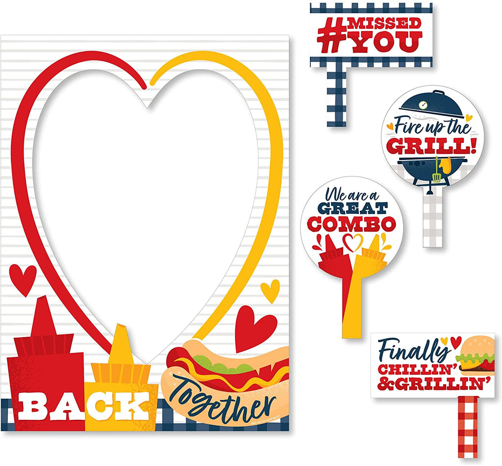 Missed You BBQ - Backyard Summer Picnic Party Selfie Photo Booth Picture Frame and Props