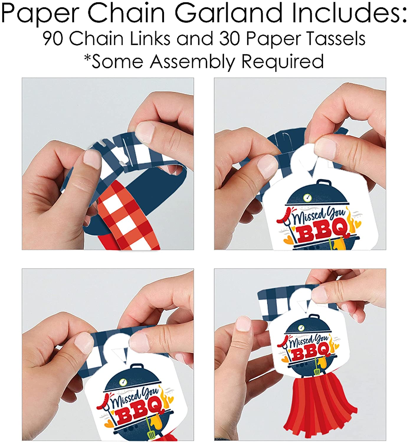 Missed You BBQ - 90 Chain Links and 30 Paper Tassels Decoration Kit - Backyard Summer Picnic Party Paper Chains Garland - 21 feet is backordered and will ship as soon as it is back in stock.