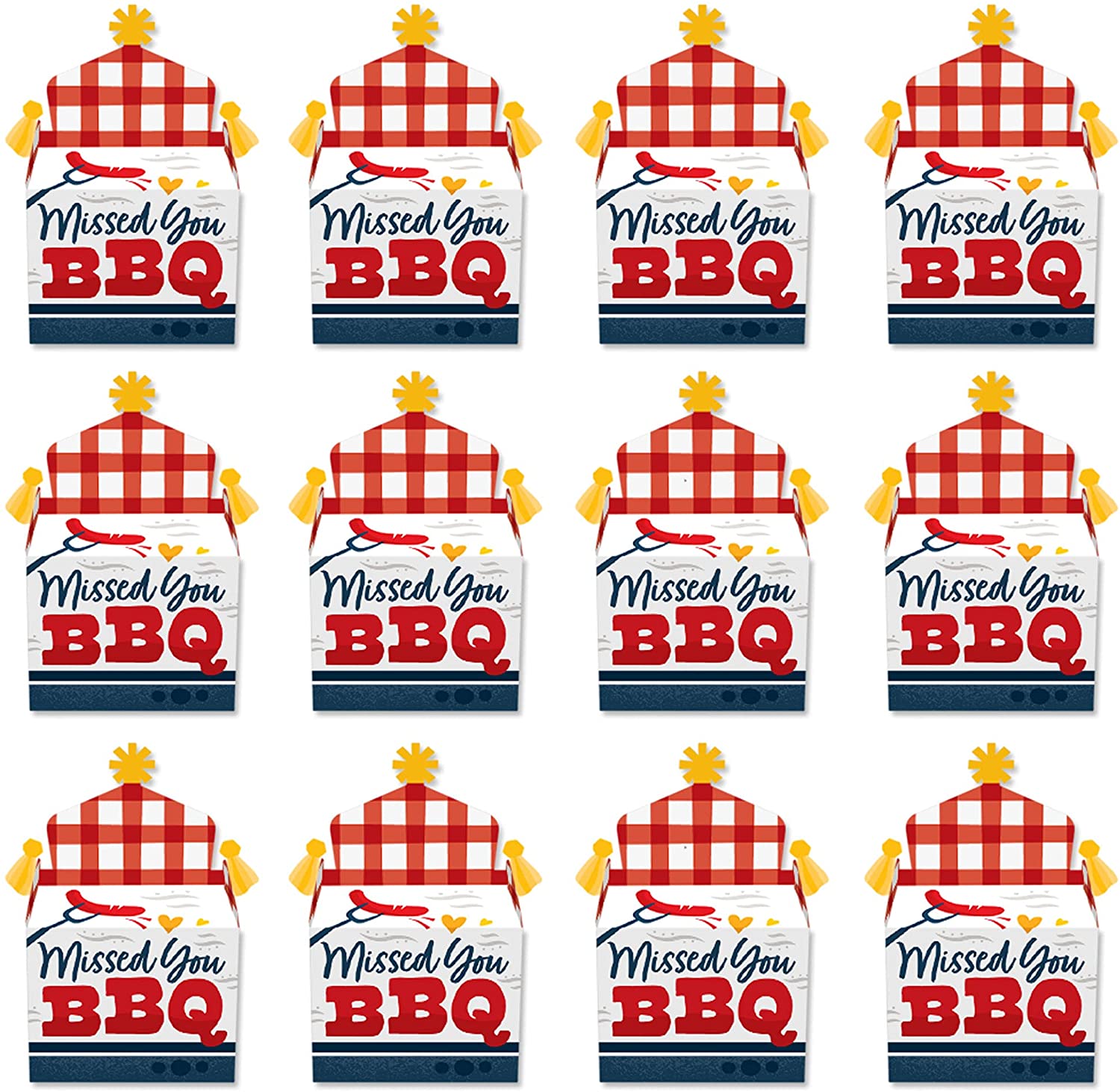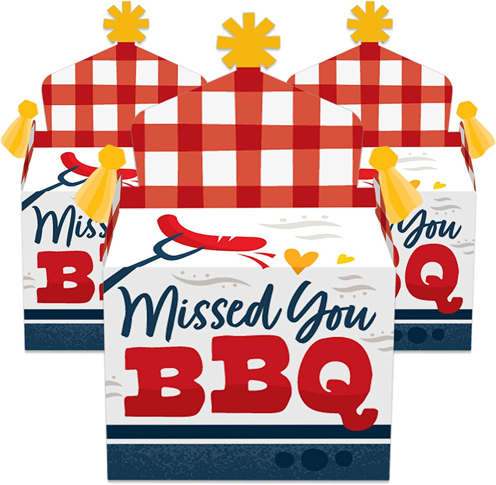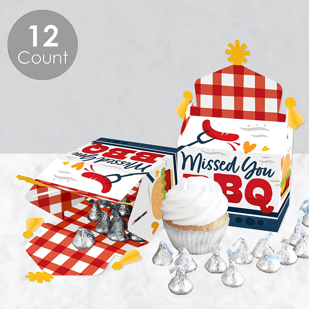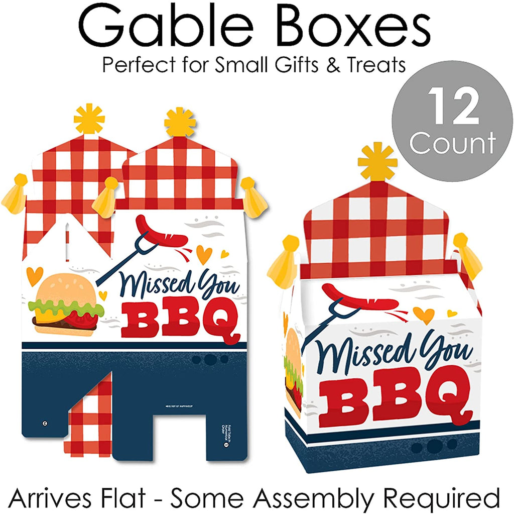 Missed You BBQ - Treat Box Party Favors - Backyard Summer Picnic Party Goodie Gable Boxes - Set of 12 is backordered and will ship as soon as it is back in stock.