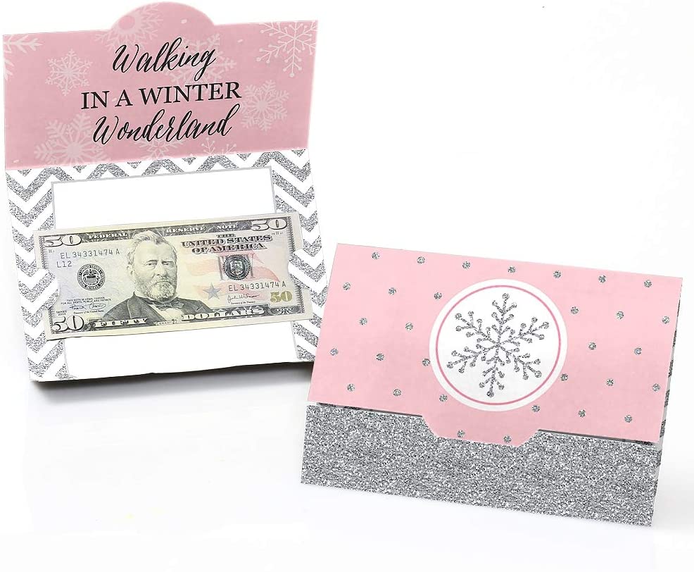 Pink Winter Wonderland - Holiday Snowflake Birthday Party or Baby Shower Money and Gift Card Holders - Set of 8 is backordered and will ship as soon as it is back in stock.