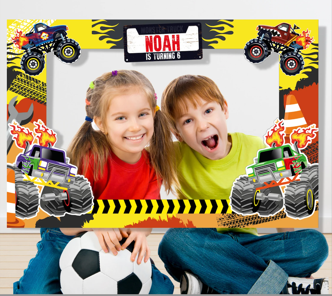 Monster Truck - Photo Booth Frame - Custom Name and Age is backordered and will ship as soon as it is back in stock.