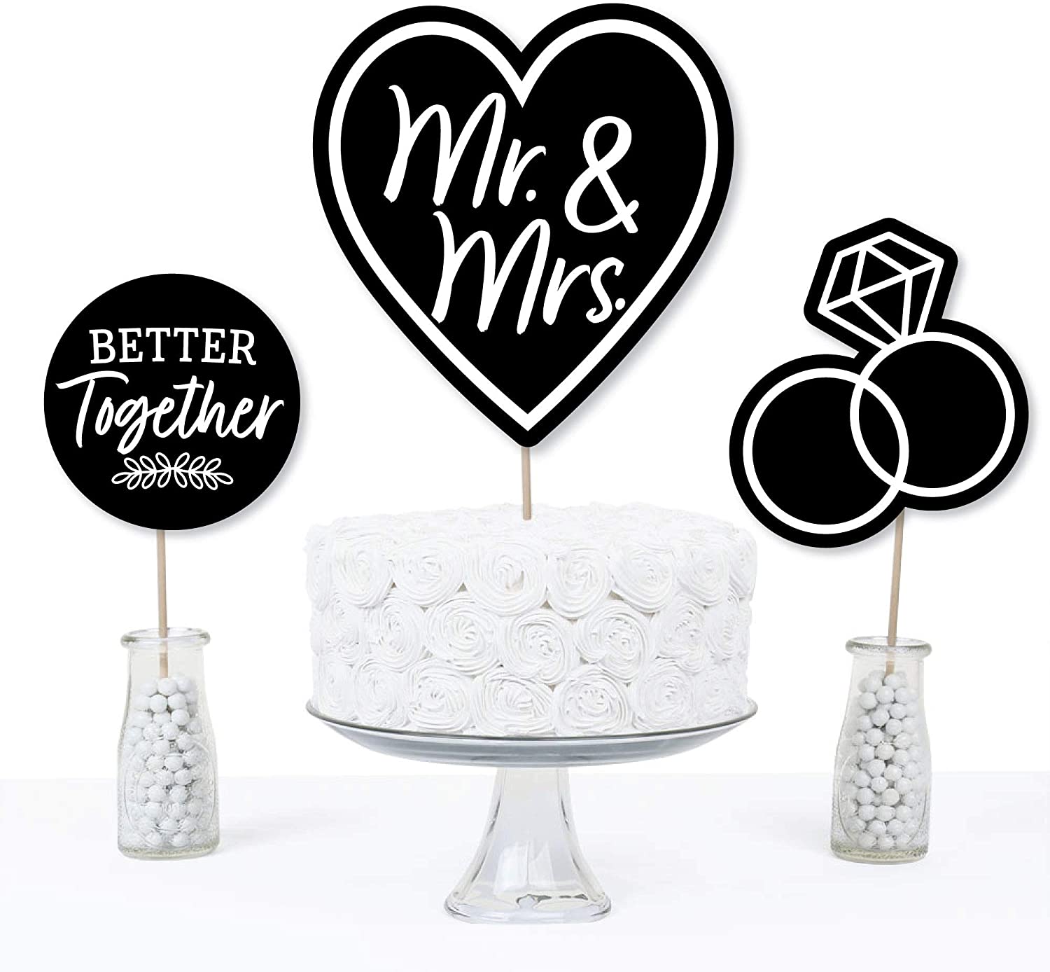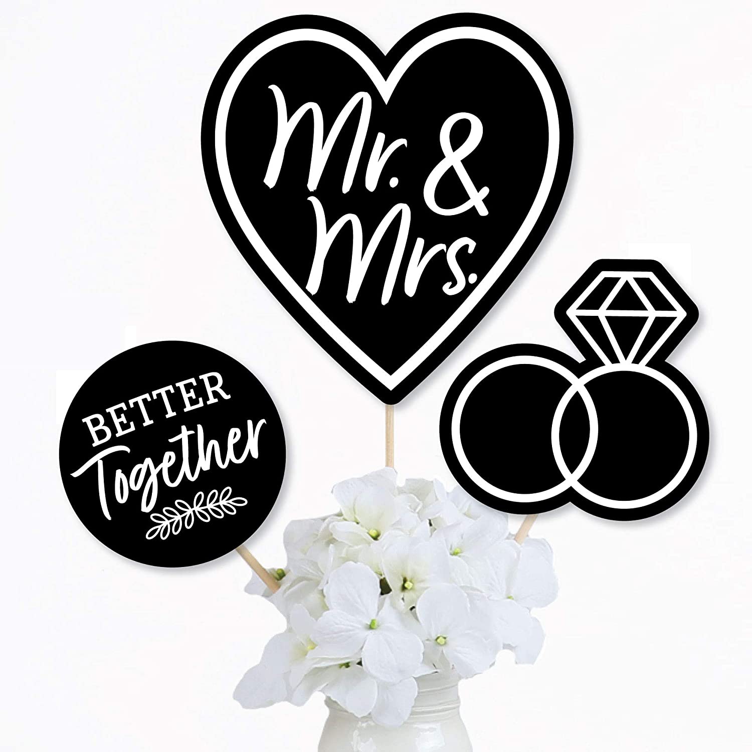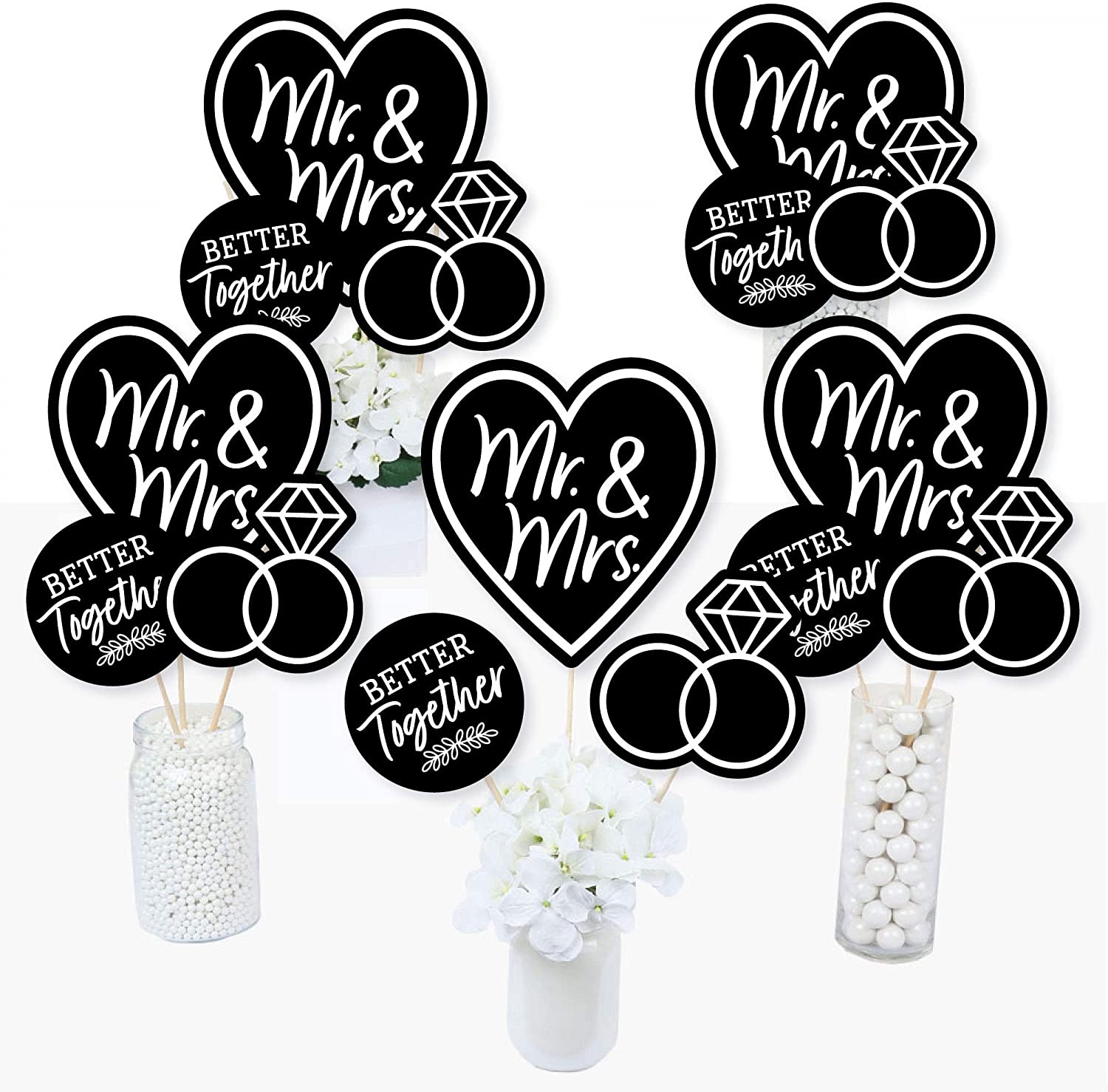 Mr. and Mrs. - Black and White Wedding or Bridal Shower Centerpiece Sticks - Table Toppers - Set of 15 is backordered and will ship as soon as it is back in stock.