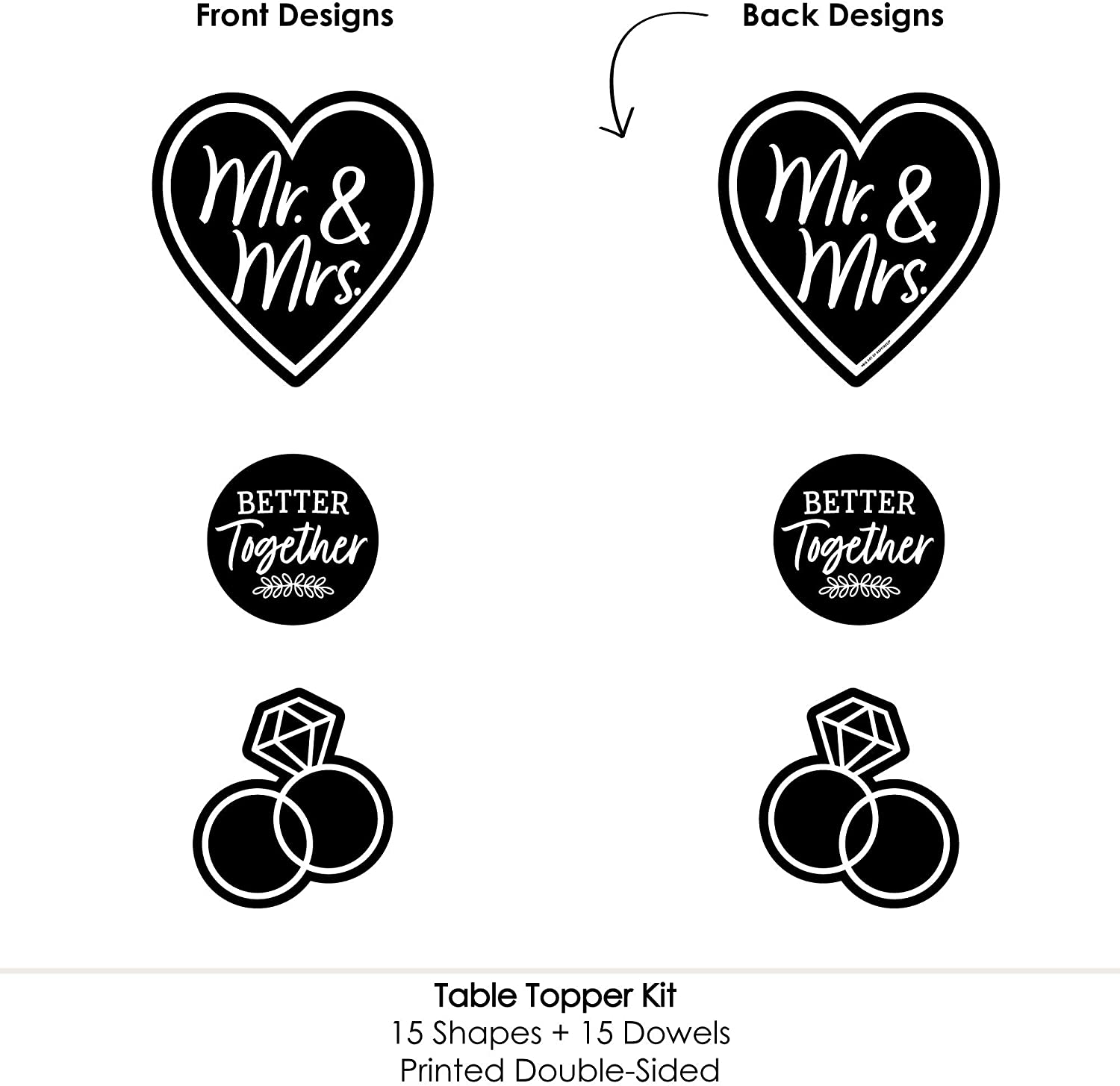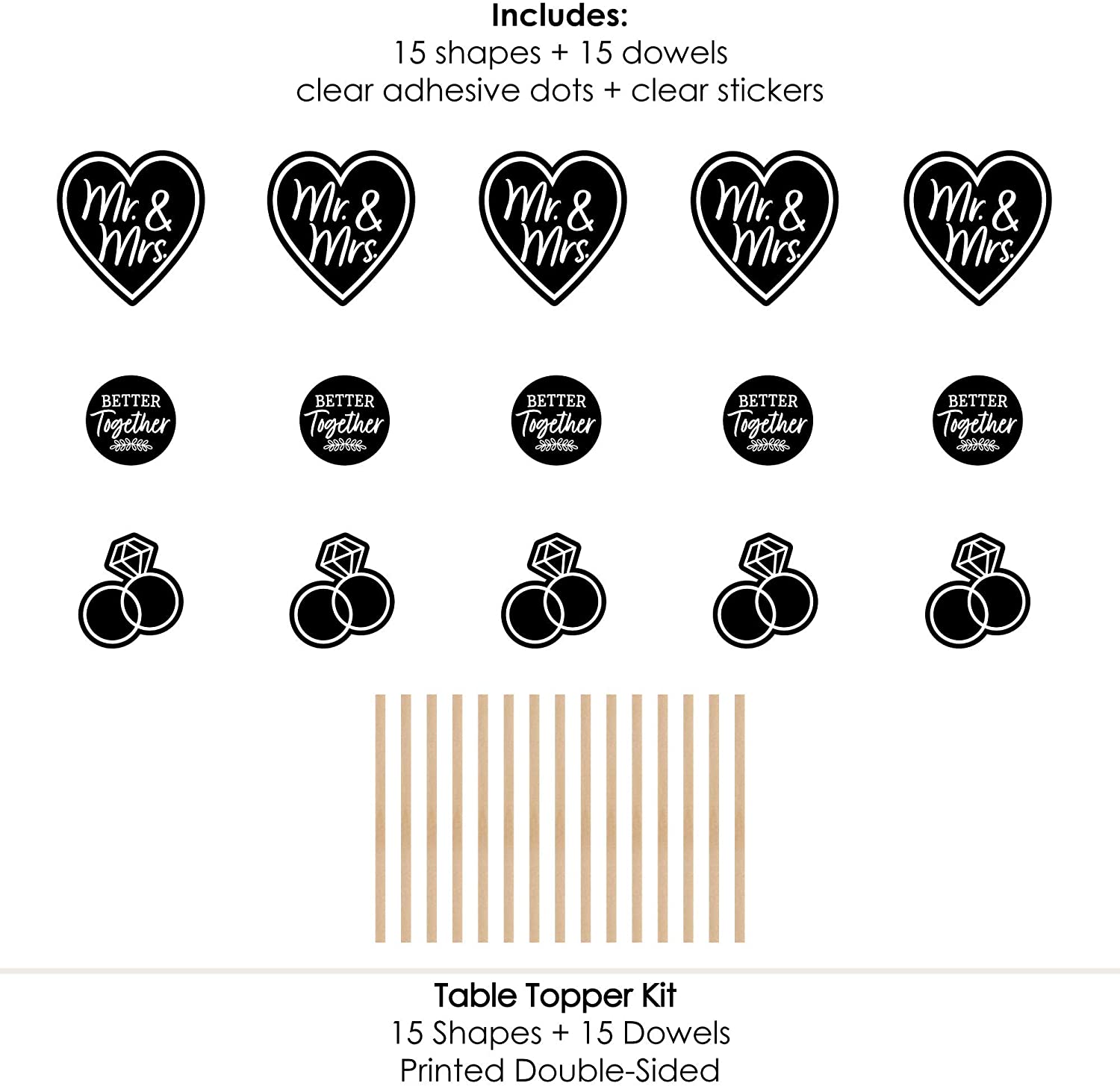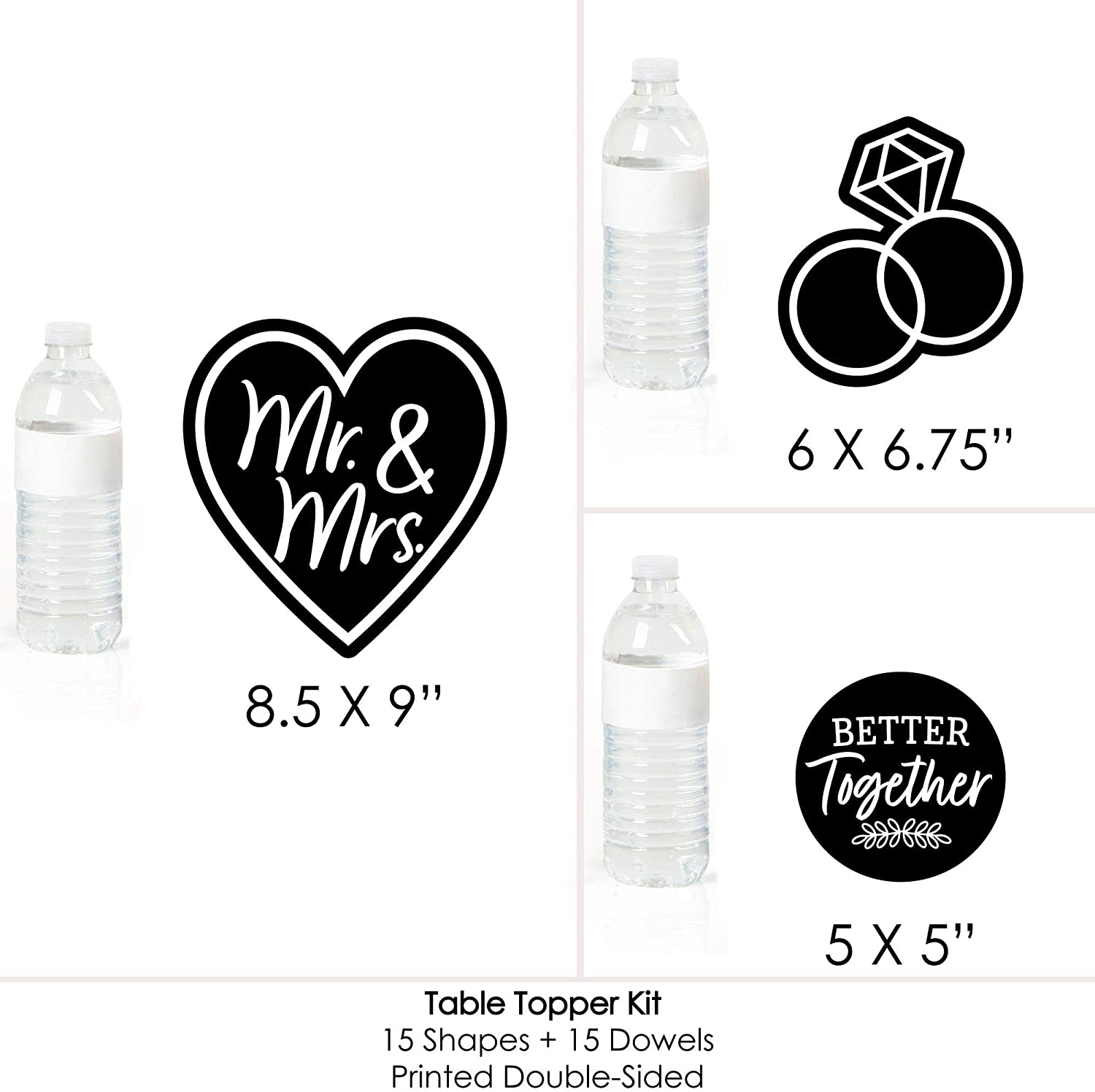 Mr. and Mrs. - Black and White Wedding or Bridal Shower Centerpiece Sticks - Table Toppers - Set of 15 is backordered and will ship as soon as it is back in stock.