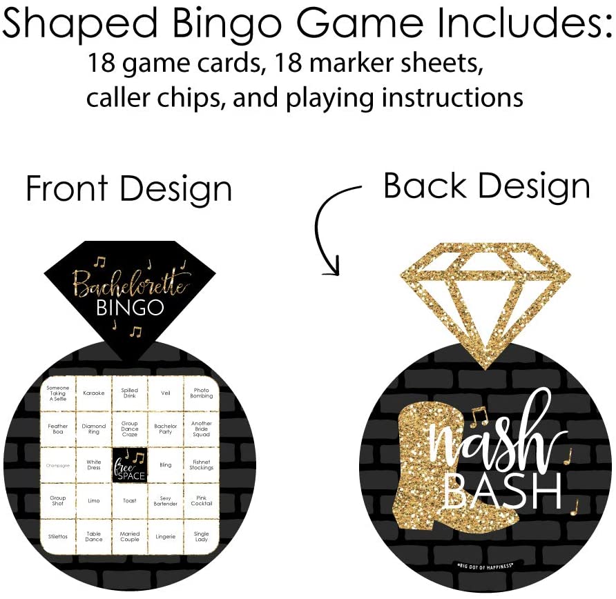Nash Bash - Bar Bingo Cards and Markers - Nashville Bachelorette Party Shaped Bingo Game - Set of 18 is backordered and will ship as soon as it is back in stock.