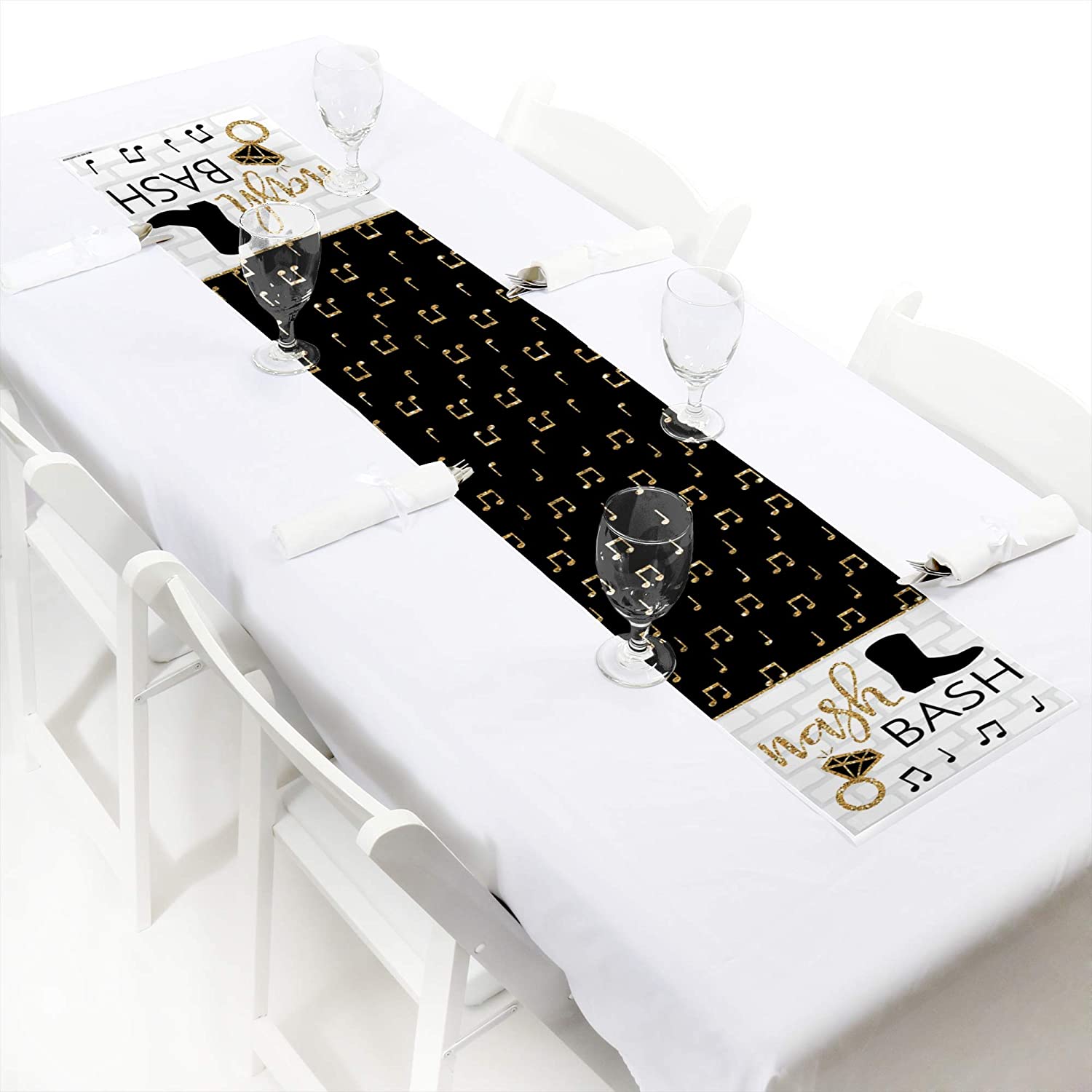 • EASY BACHELORETTE PARTY DECORATIONS: Nash Bash Table Runner is an easy way to decorate for your bachelorette party and bring the black and gold theme to life. Easily dress up any food or gift table with this cute paper table runner.