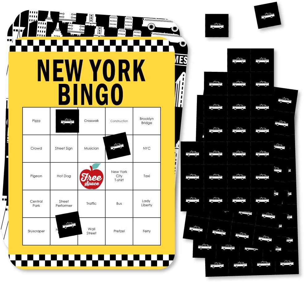 NYC Cityscape - Bar Bingo Cards and Markers - New York City Party Bingo Game - Set of 18 is backordered and will ship as soon as it is back in stock.