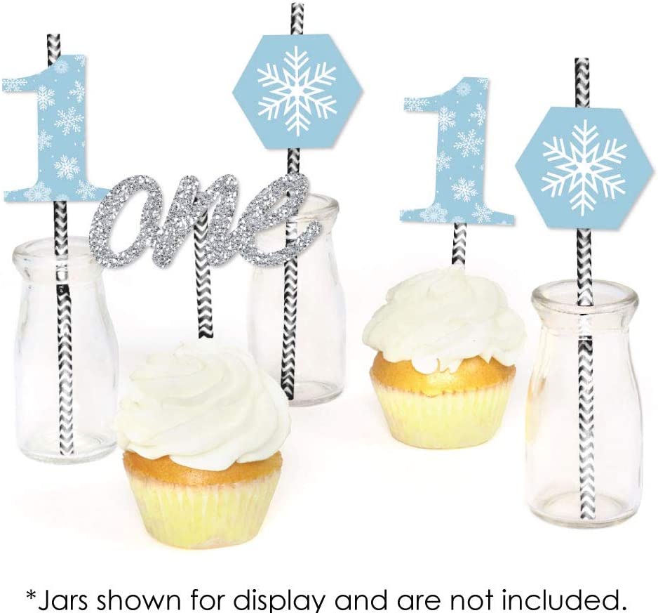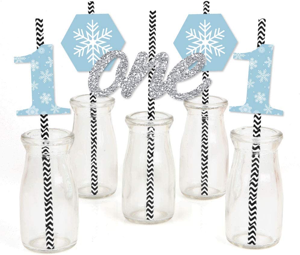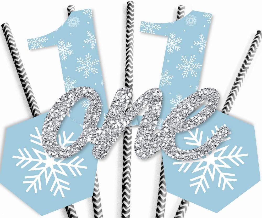 Onederland - Paper Straw Decor - Holiday Snowflake Winter Wonderland Birthday Party Striped Decorative Straws - Set of 24 is backordered and will ship as soon as it is back in stock.