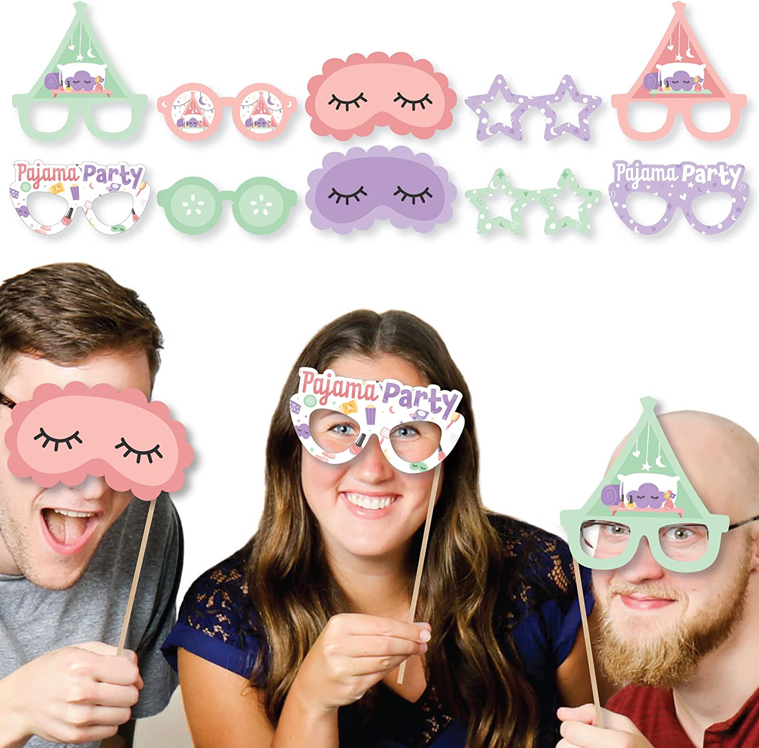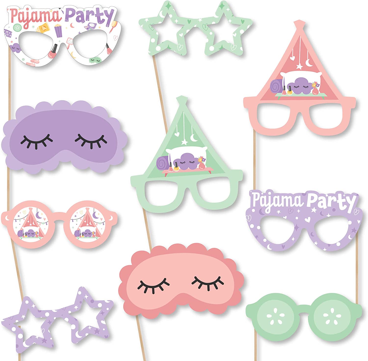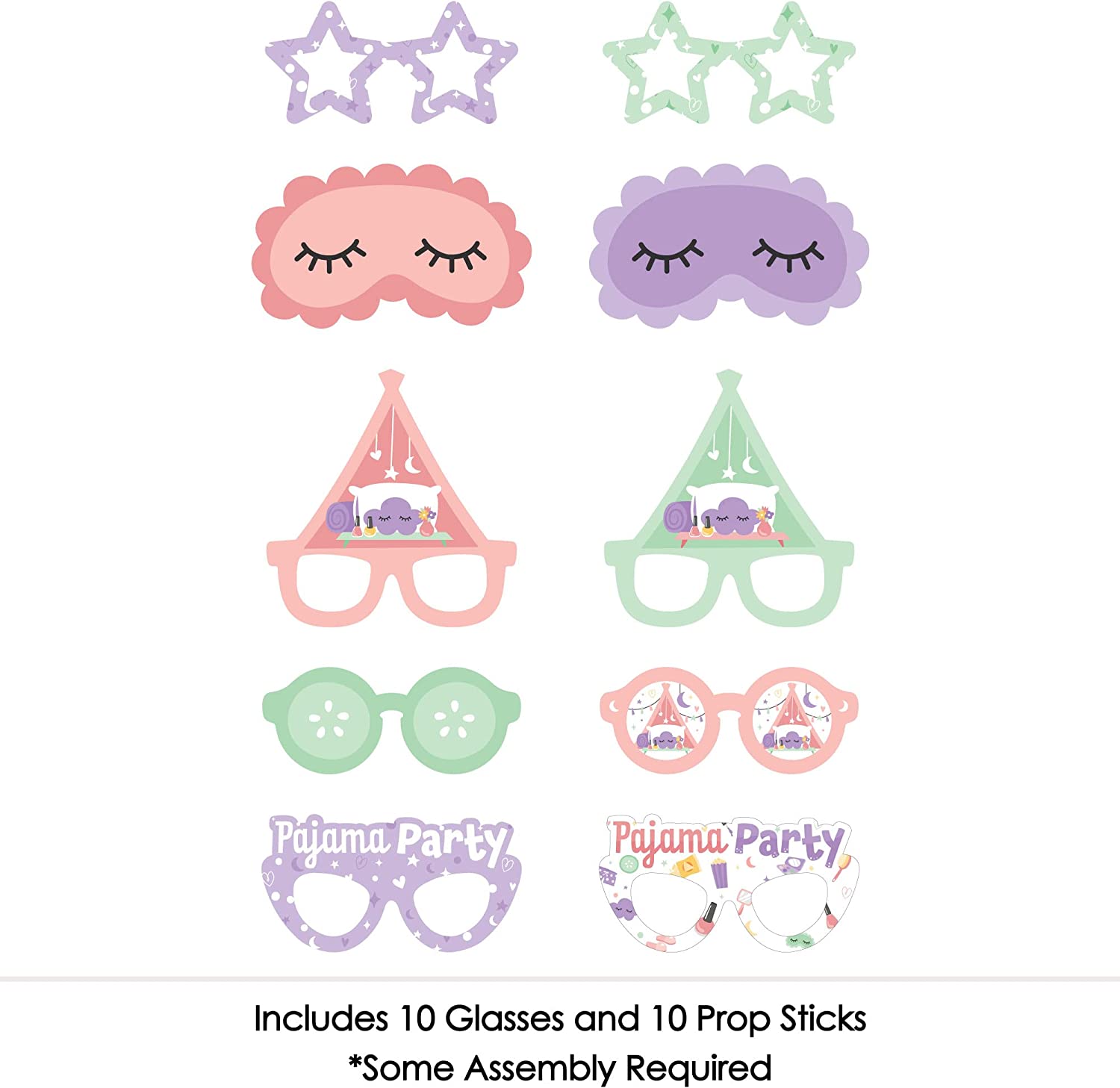 Pajama Slumber Party Glasses and Masks - Paper Card Stock Girls Sleepover Birthday Party Photo Booth Props Kit - 10 Count is backordered and will ship as soon as it is back in stock.